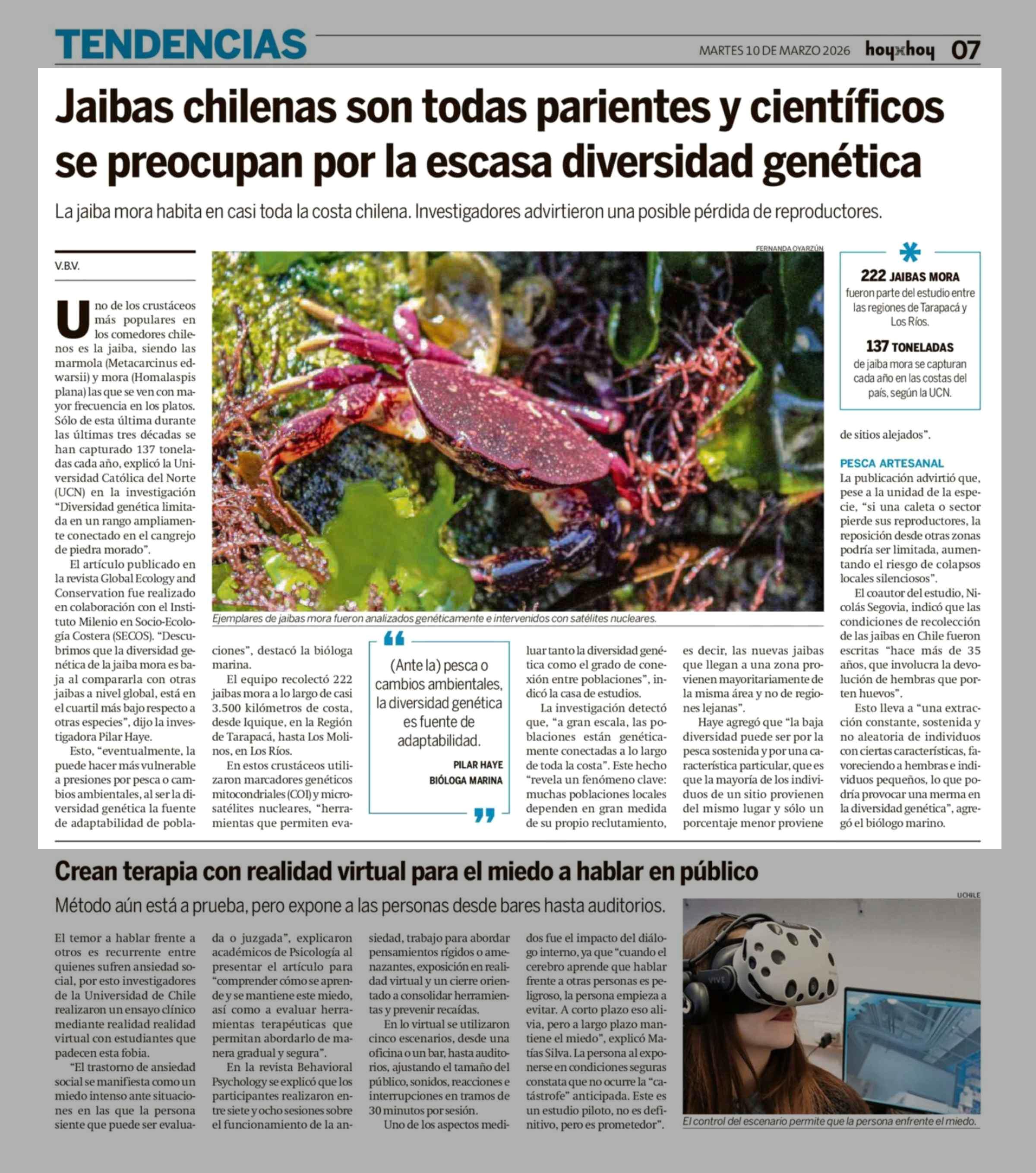 Título: Jaibas chilenas son todas parientes y científicos se preocupan por la escasa diversidad genética
