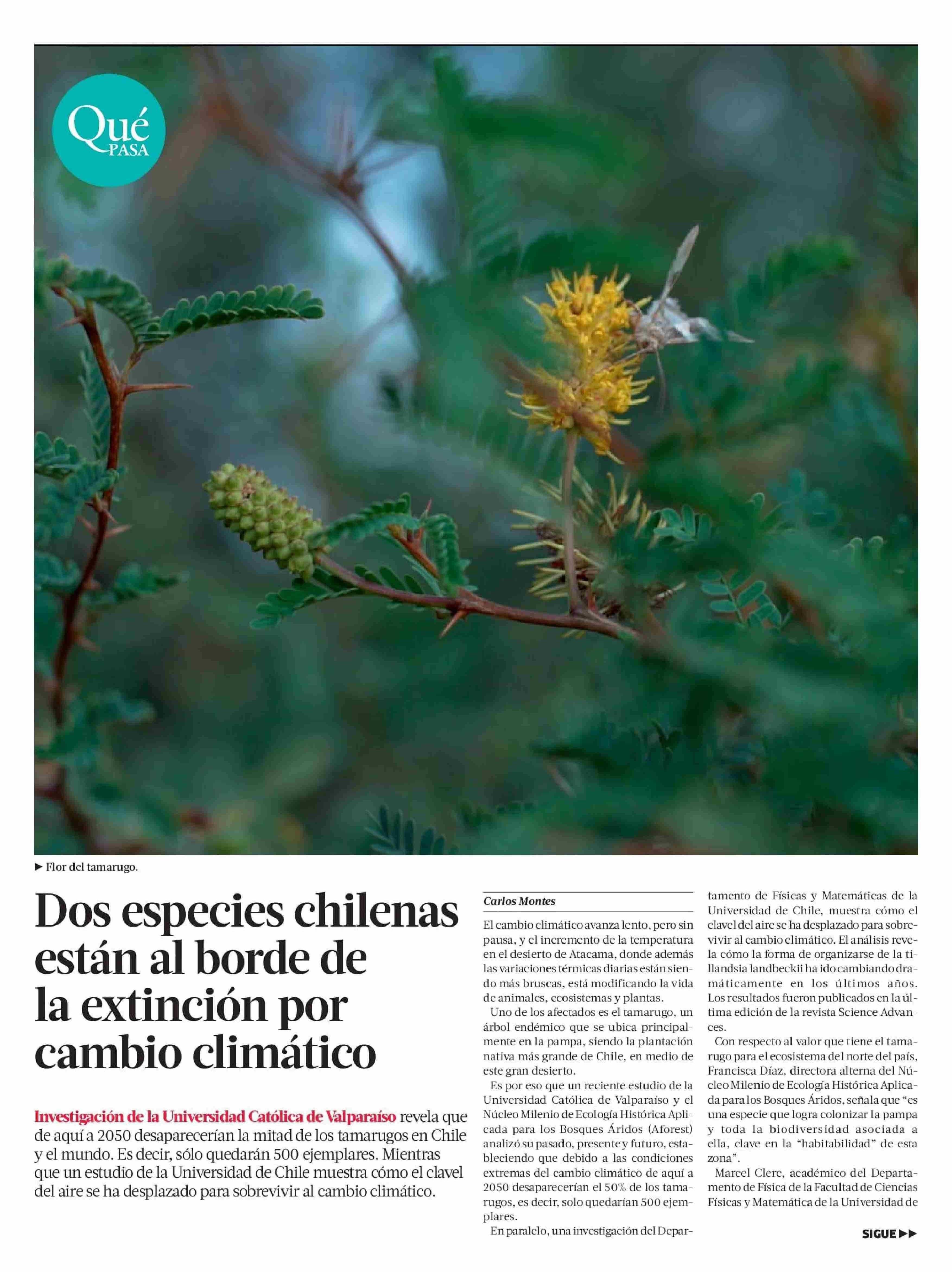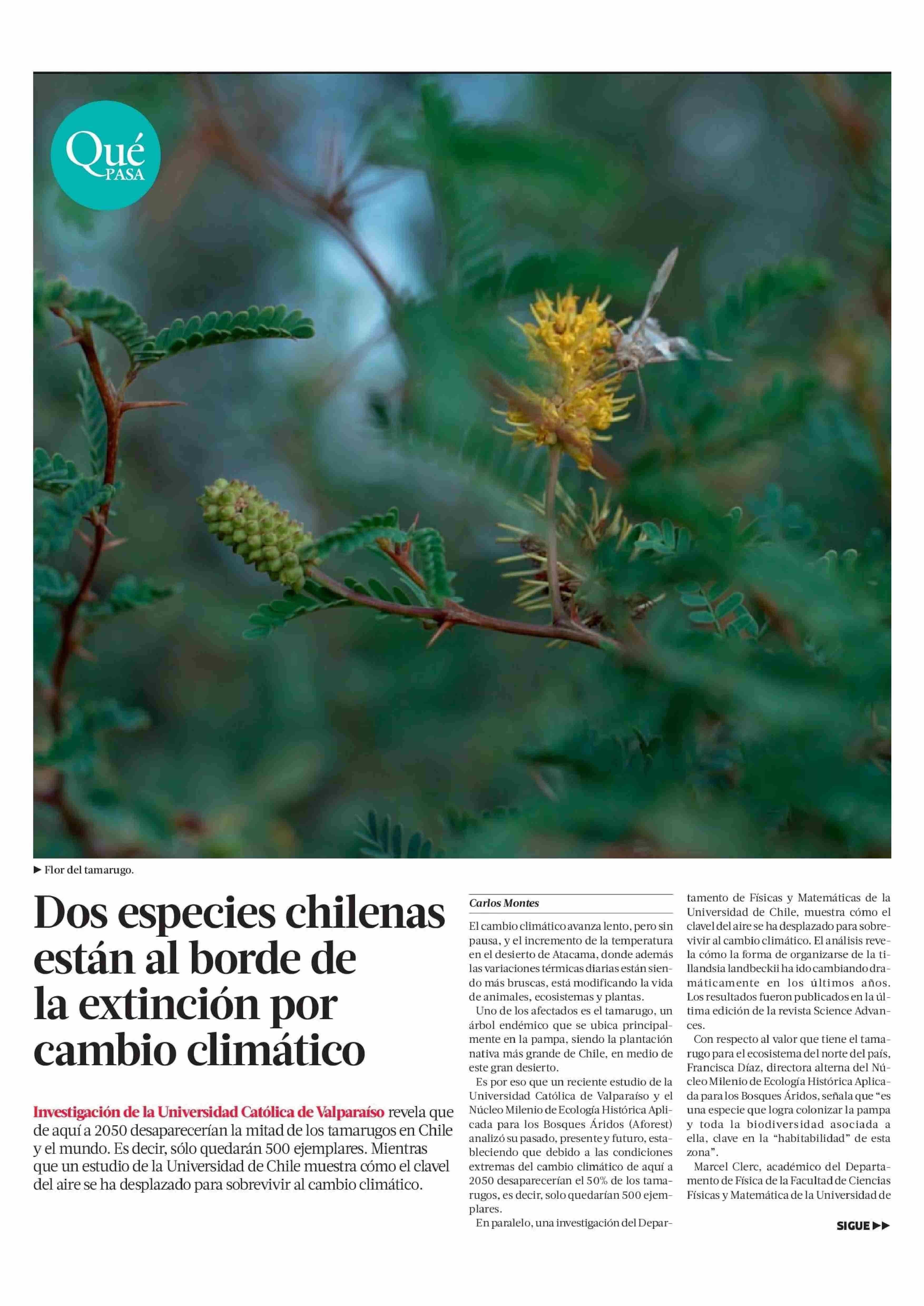 Dos especies chilenas están al borde de la extinción por cambio climático 14-08-2023 La Tercera |