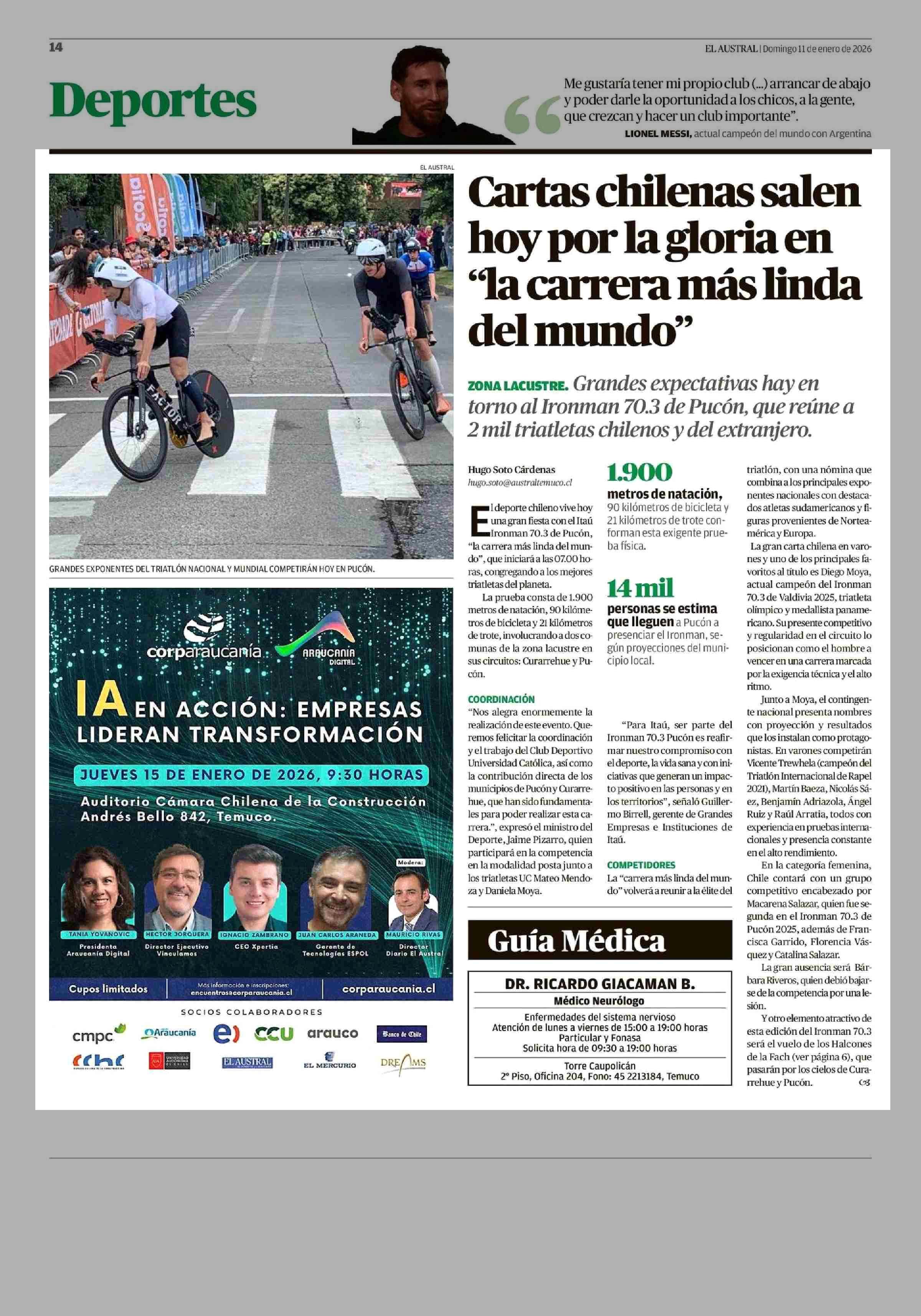 Cartas chilenas salen hoy por la gloria en "la carrera más linda del mundo" 11-01-2026 El Austral de la Araucanía |