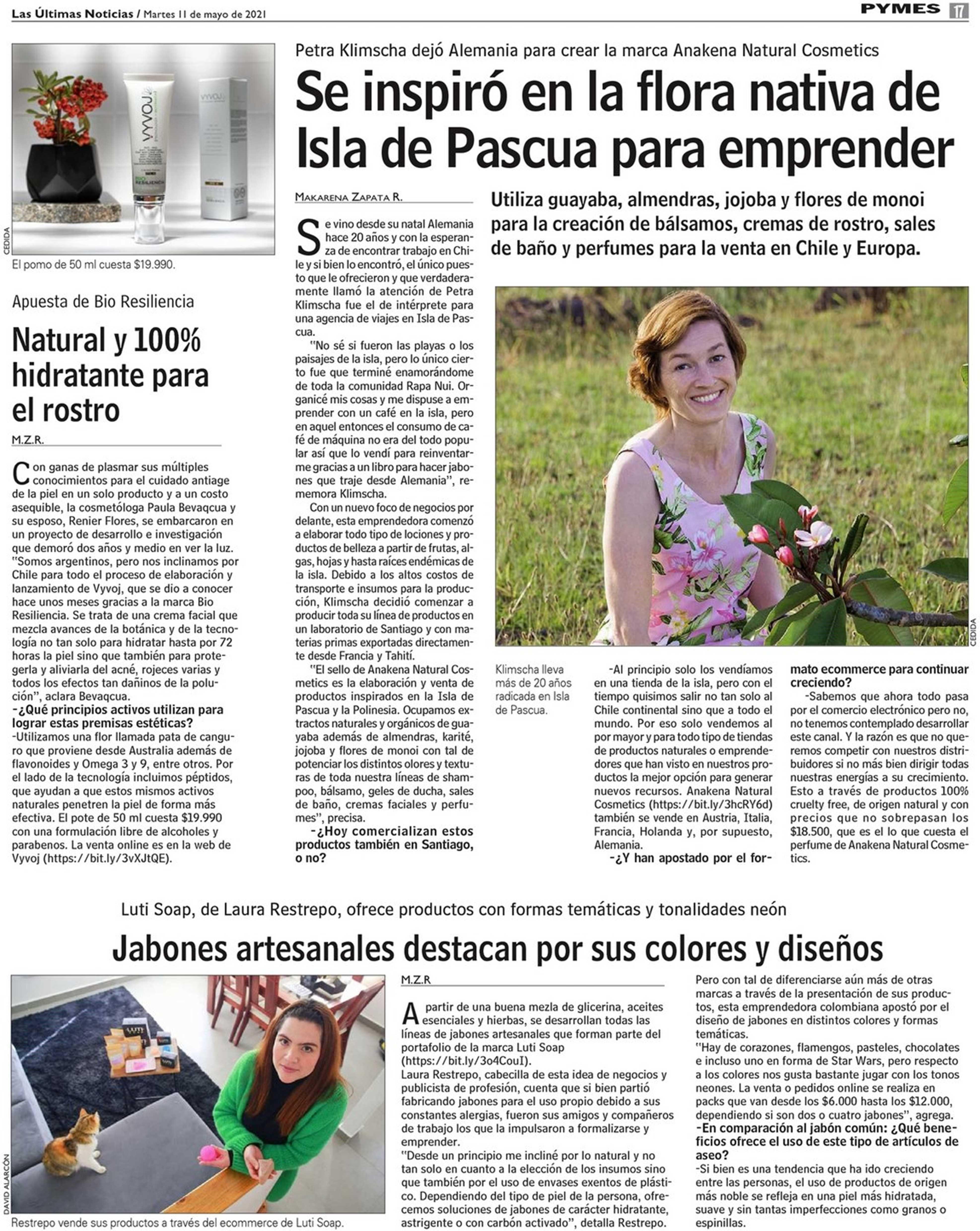 Se inspiró en la flora nativa de Isla de Pascua para emprender 11-05-2021 Las Últimas Noticias |
