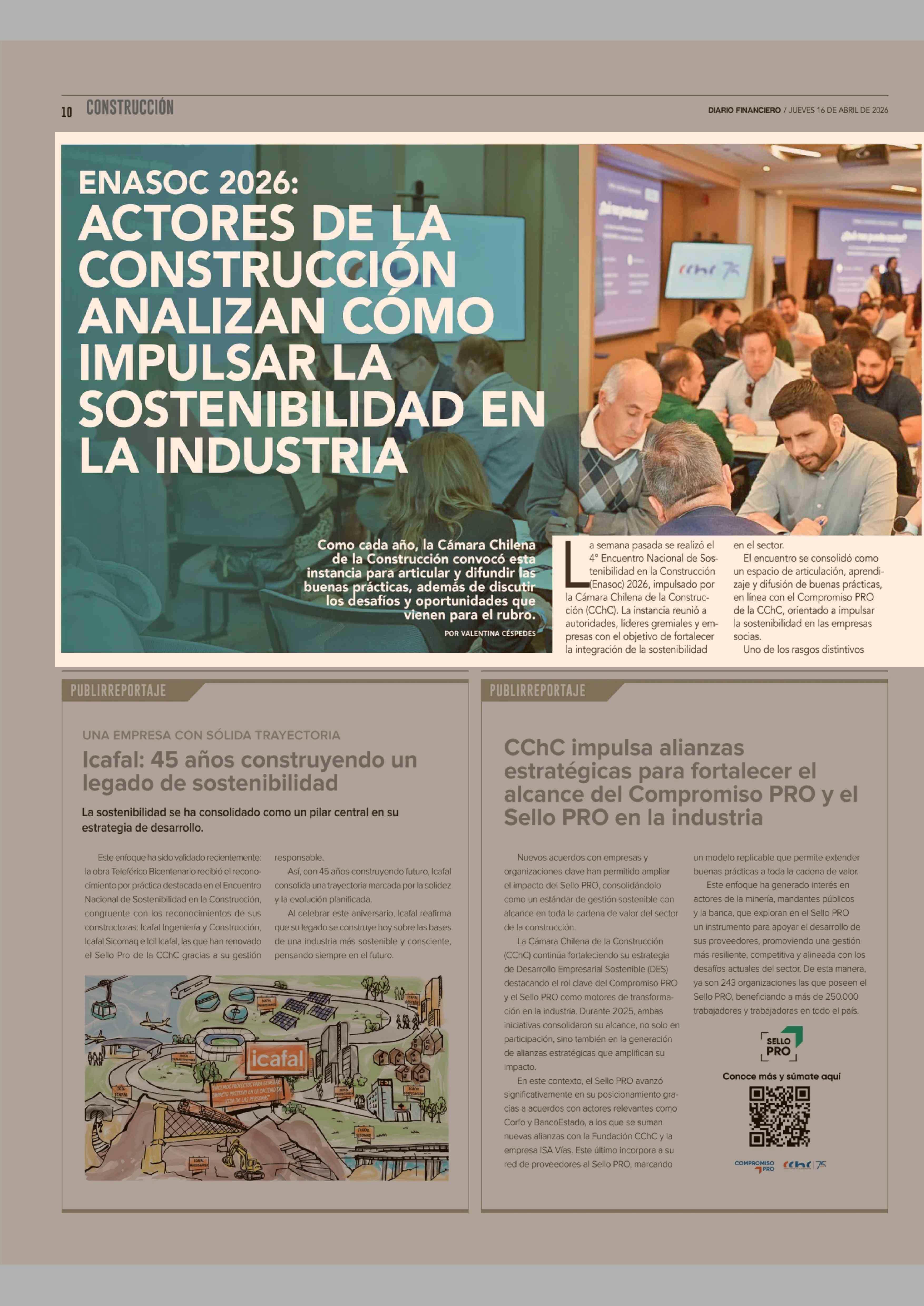 ENASOC 2026: ACTORES DE LA CONSTRUCCIÓN ANALIZAN COMO IMPULSAR LA SOSTENIBILIDAD EN LA INDUSTRIA 16-04-2026 Diario Financiero |