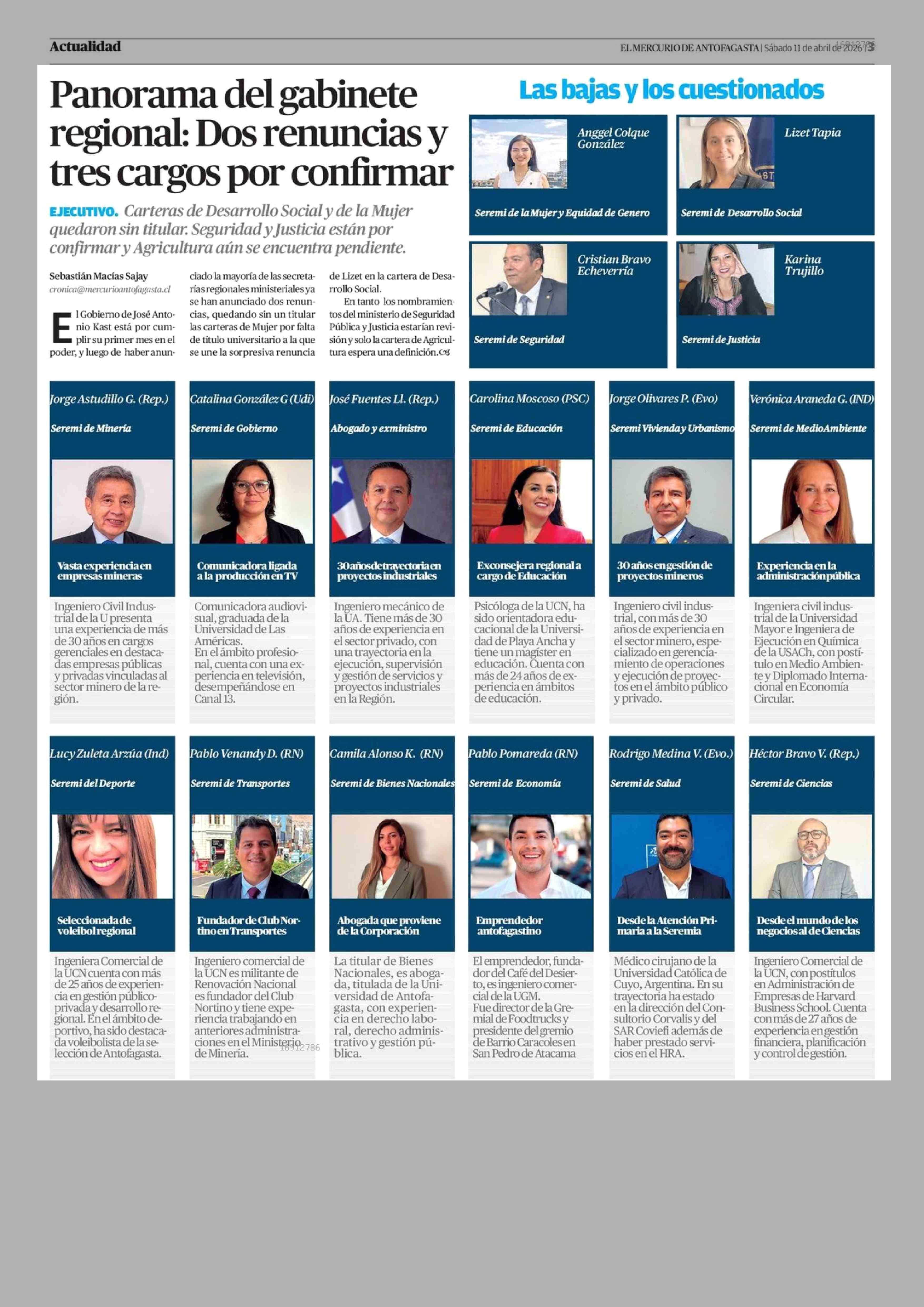 Título: Panorama del gabinete regional: Dos renuncias y tres cargos por confirmar
