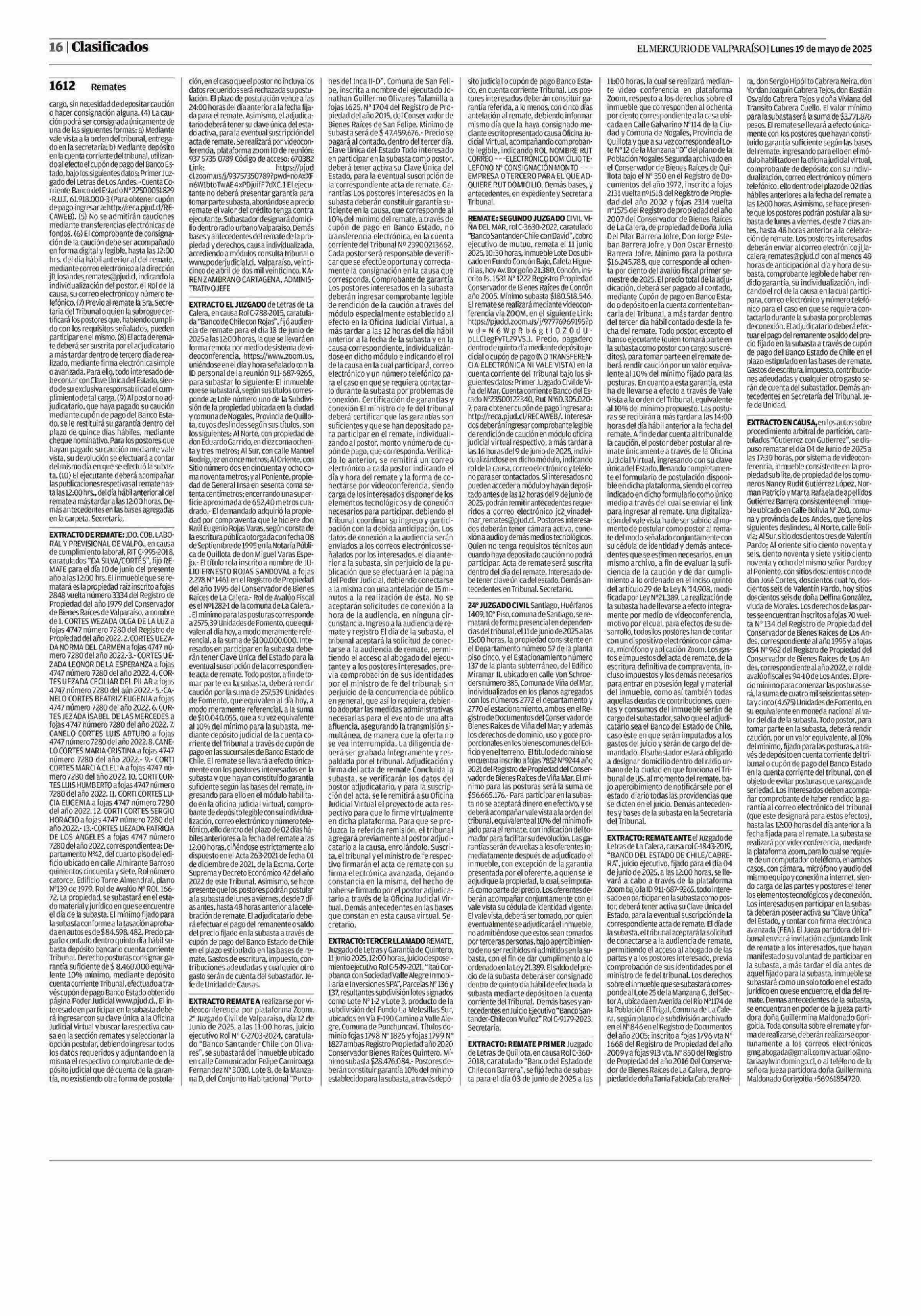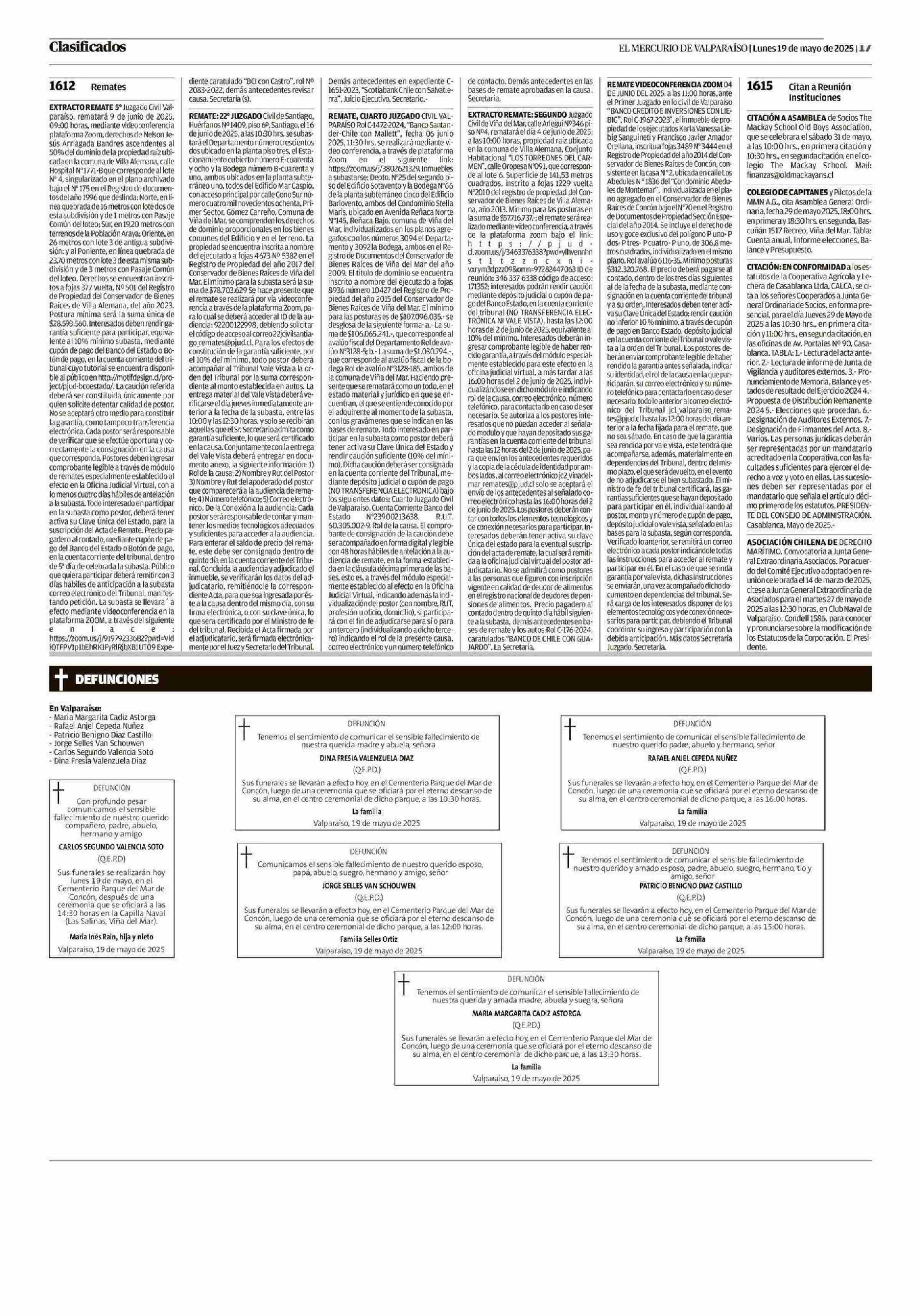 Extractos: CLASIFICADOS 19-05-2025 El Mercurio de Valparaíso |