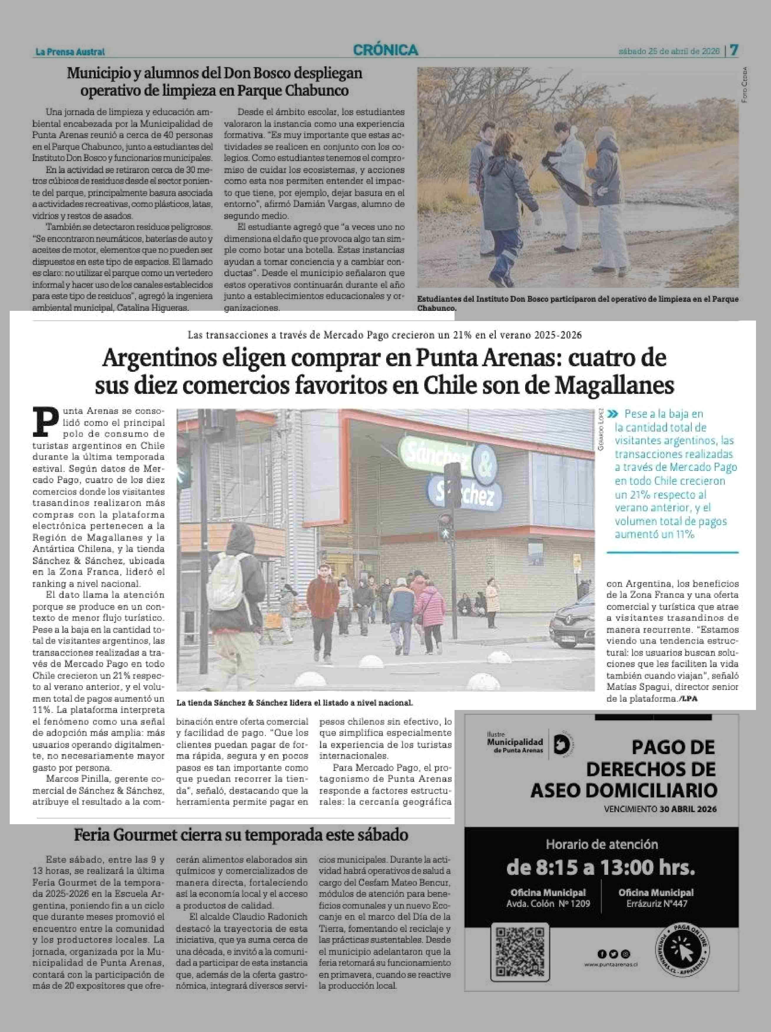 Argentinos eligen comprar en Punta Arenas: cuatro de sus diez comercios favoritos en Chile son de Magallanes 25-04-2026 La Prensa Austral |