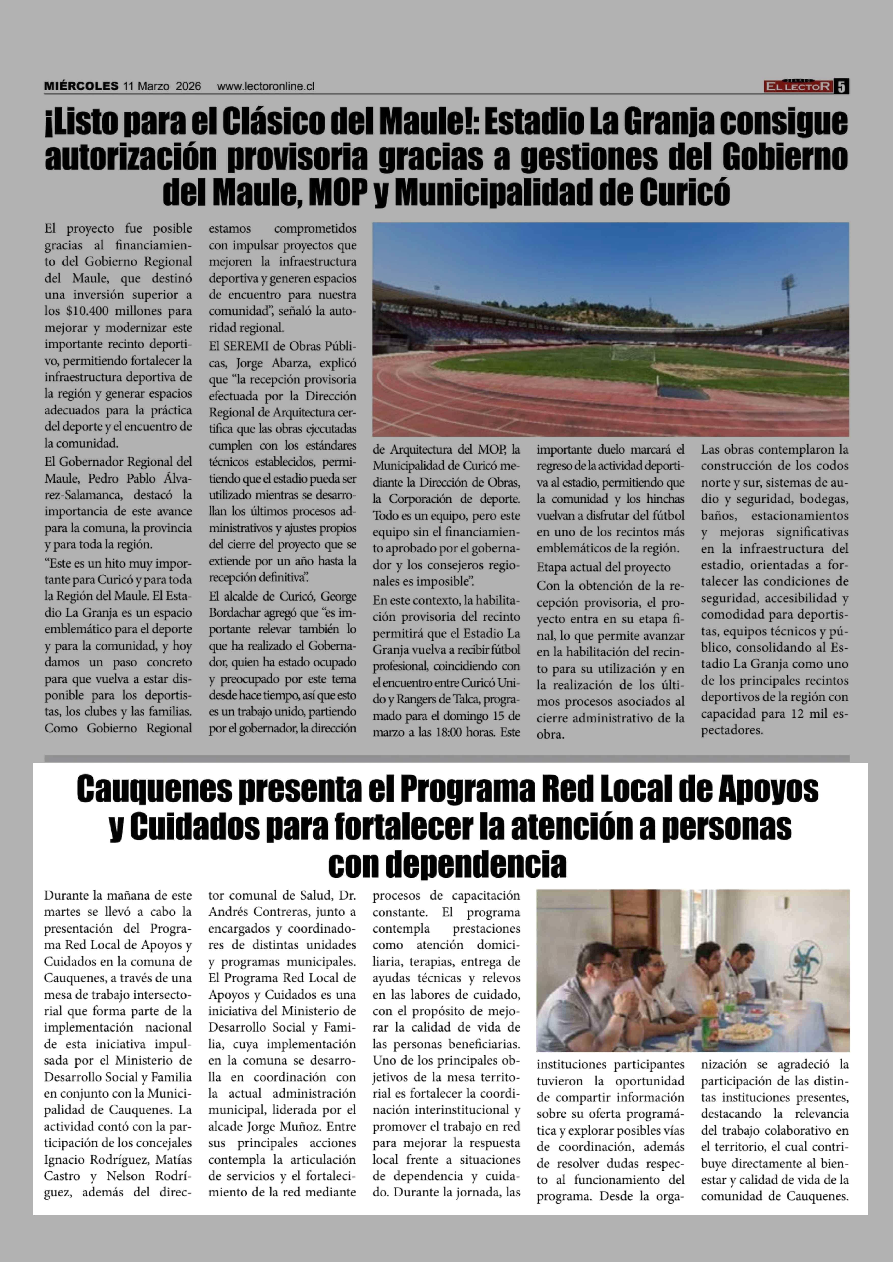 Cauquenes presenta el Programa Red Local de Apoyos y Cuidados para fortalecer la atención a personas con dependencia 11-03-2026 El Lector |