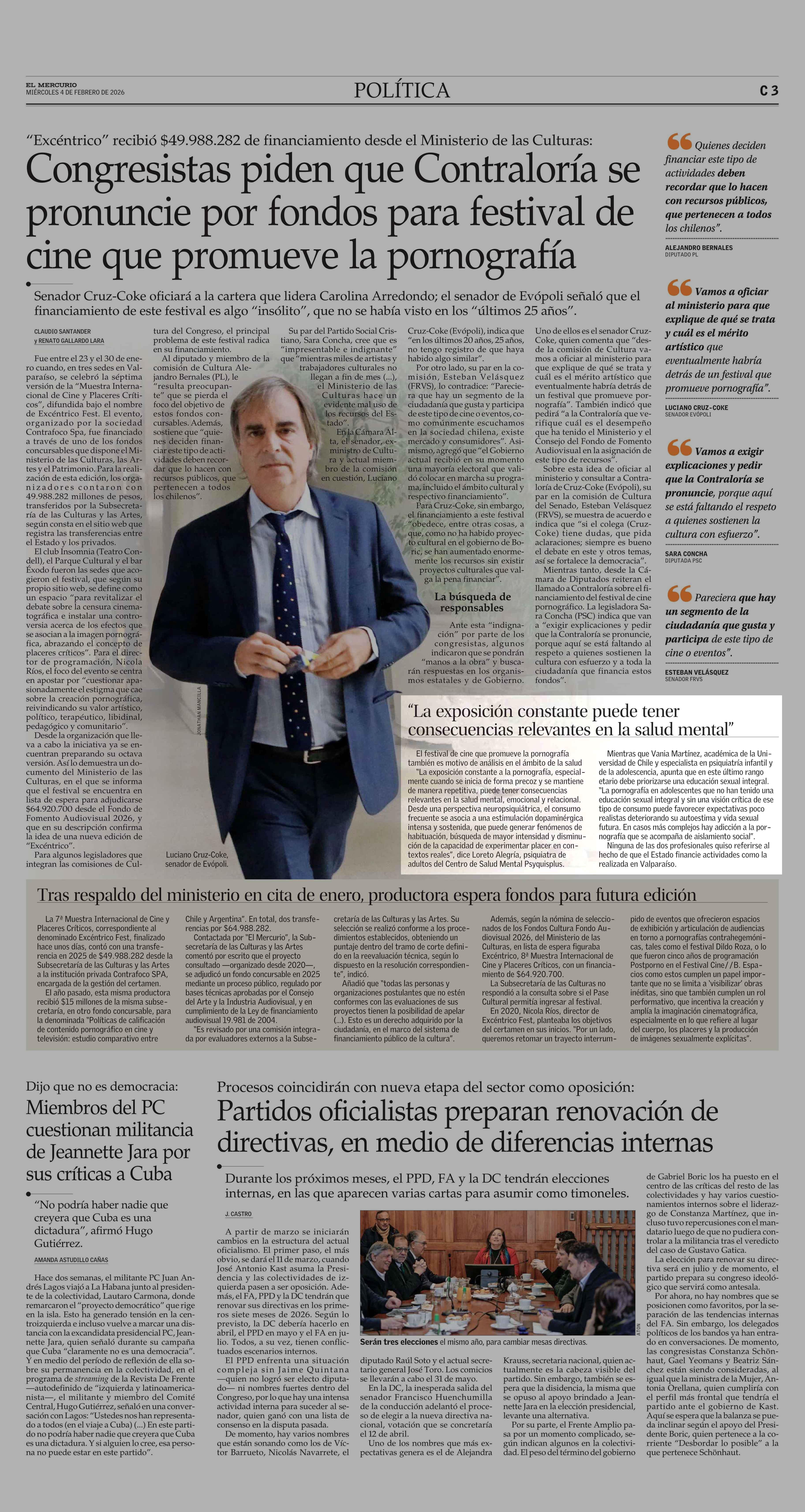 “La exposición constante puede tener consecuencias relevantes en la salud mental” 04-02-2026 El Mercurio |