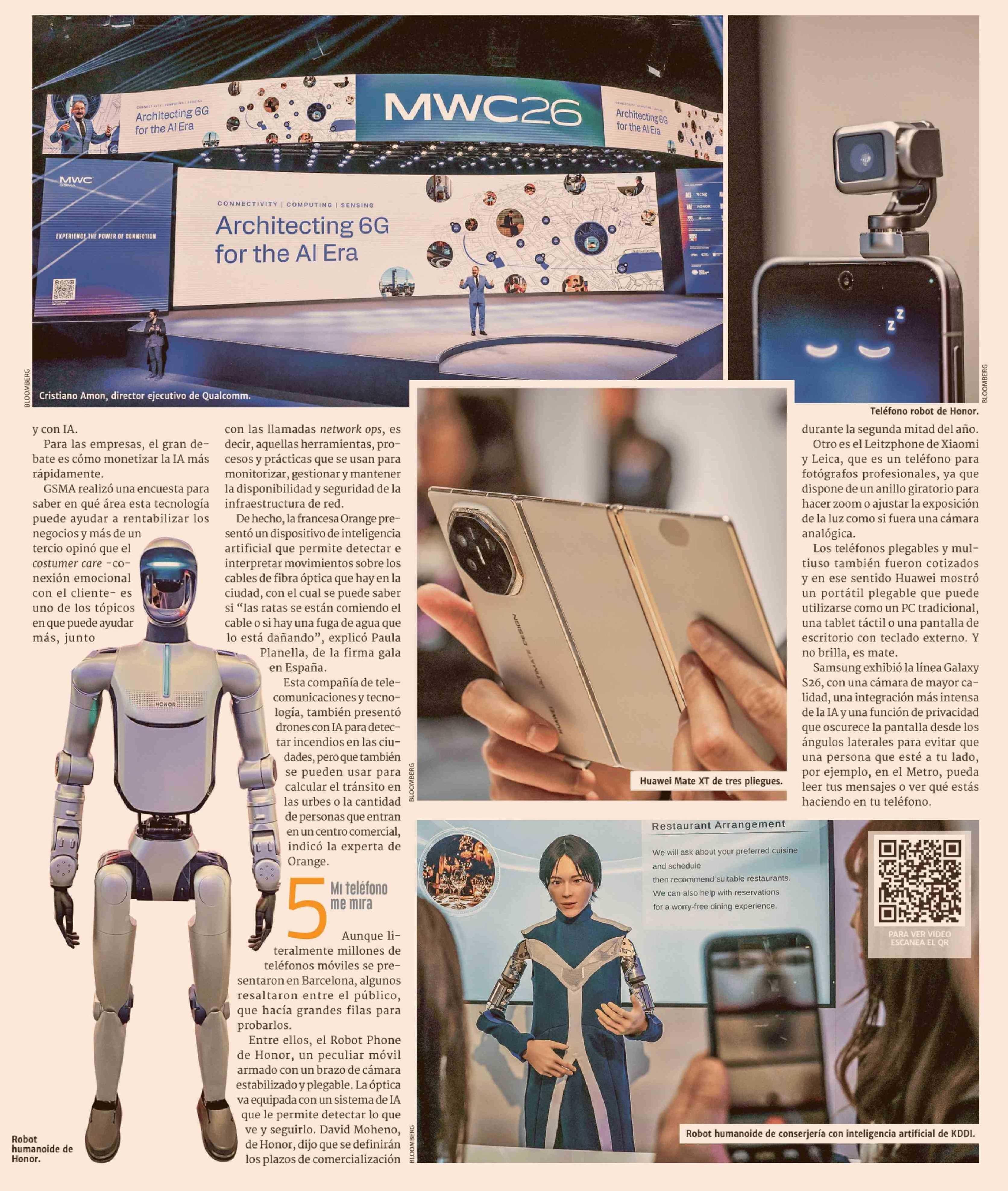 | Título: | Robots, el despliegue del 6G, IA en todo y soberanía: los temas tecnológicos que marcaron el MWC 2026 |