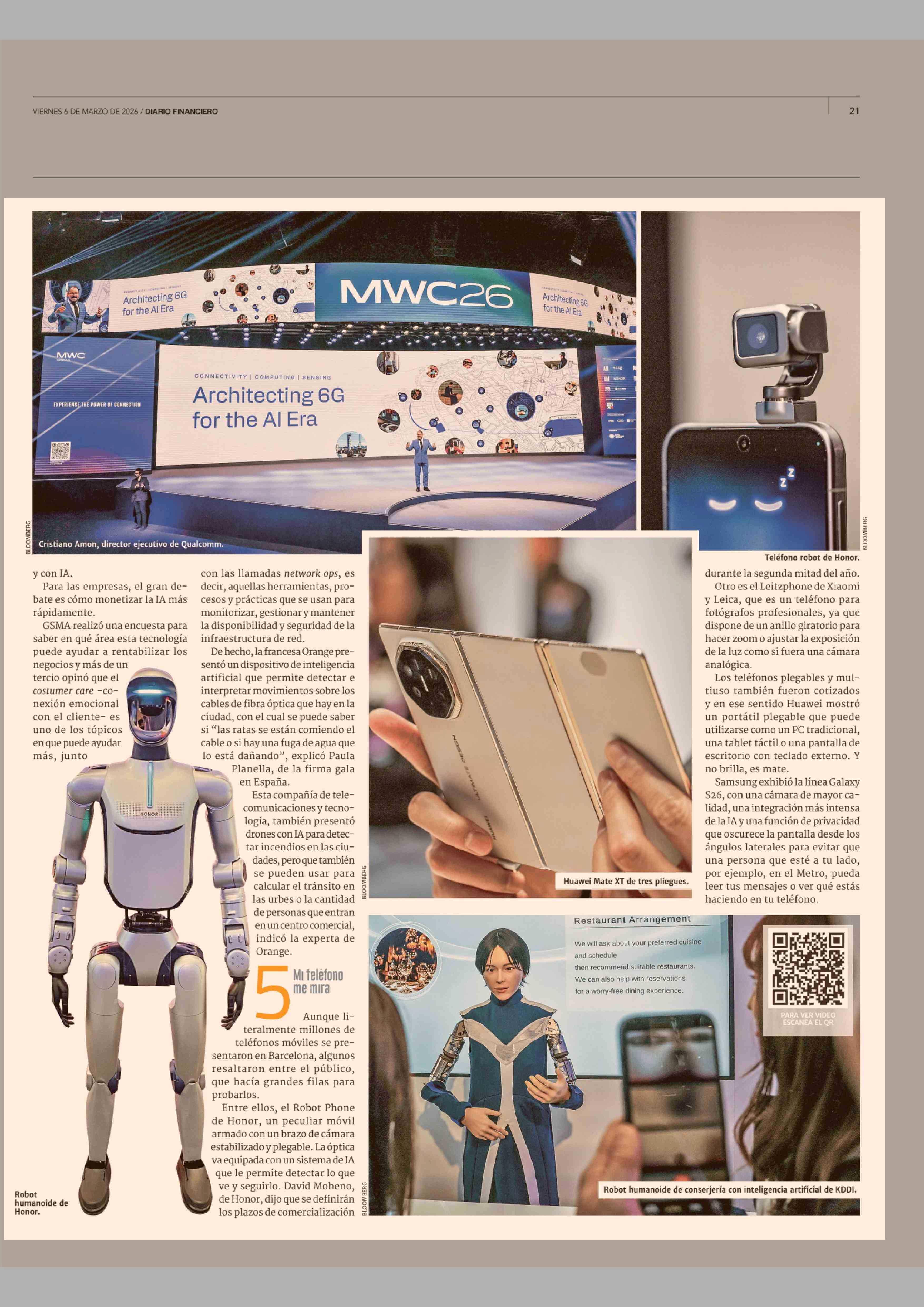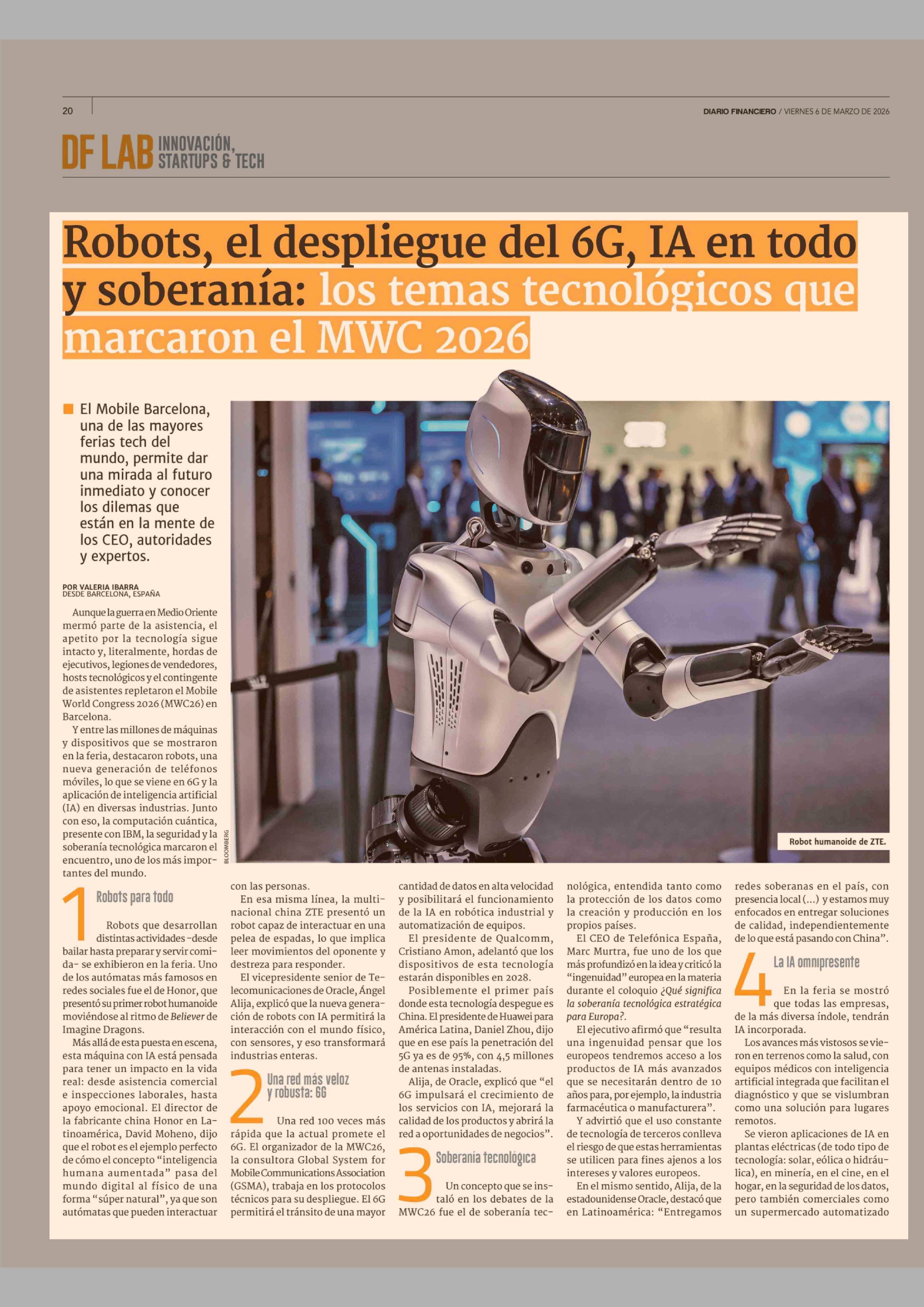 Robots, el despliegue del 6G, IA en todo y soberanía: los temas tecnológicos que marcaron el MWC 2026 06-03-2026 Diario Financiero |