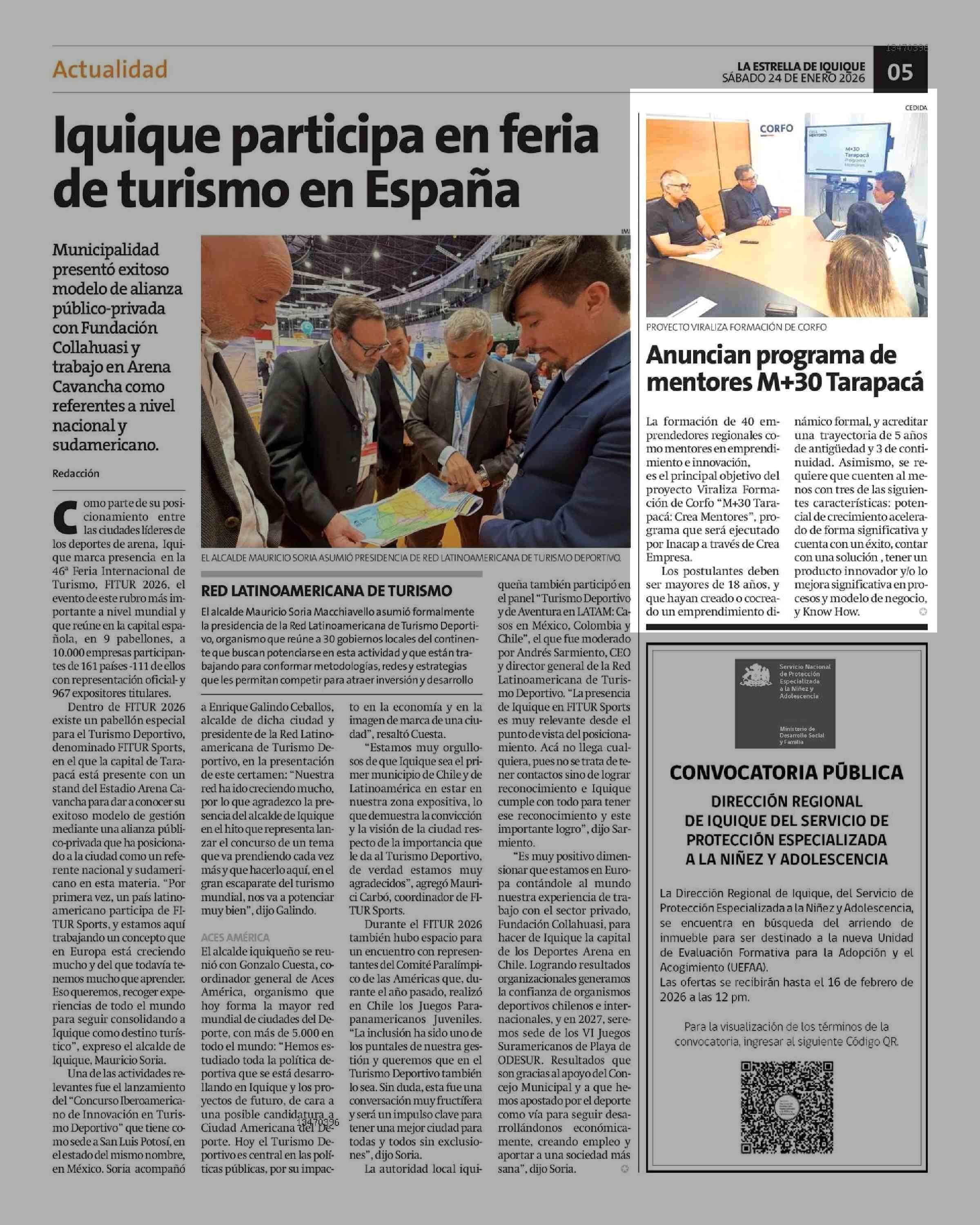 | Fecha: | 24-01-2026 | Sector: | Noticia general | Región: | Región de Tarapacá |