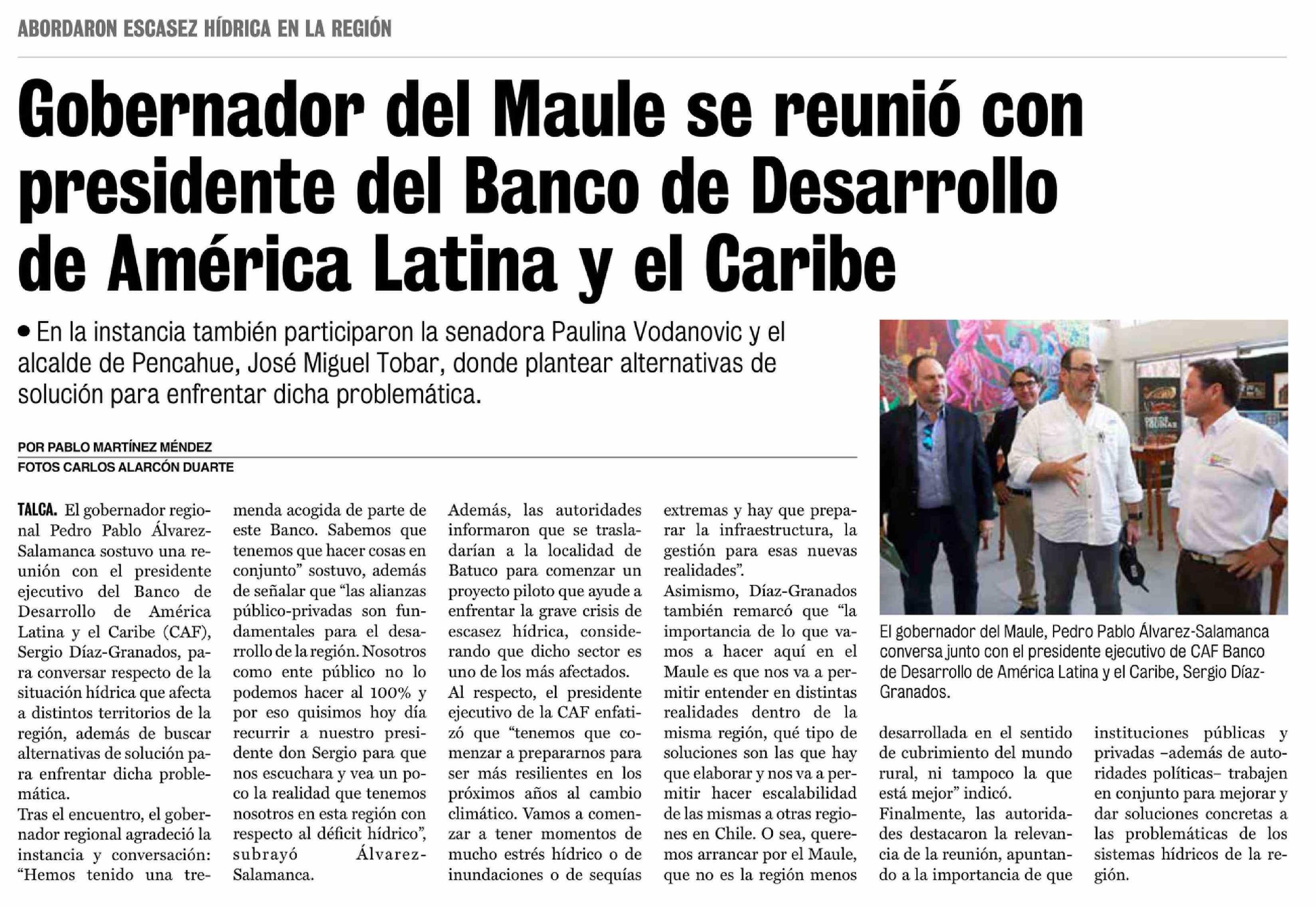 | Título: | Gobernador del Maule se reunió con presidente del Banco de Desarrollo de América Latina y el Caribe |