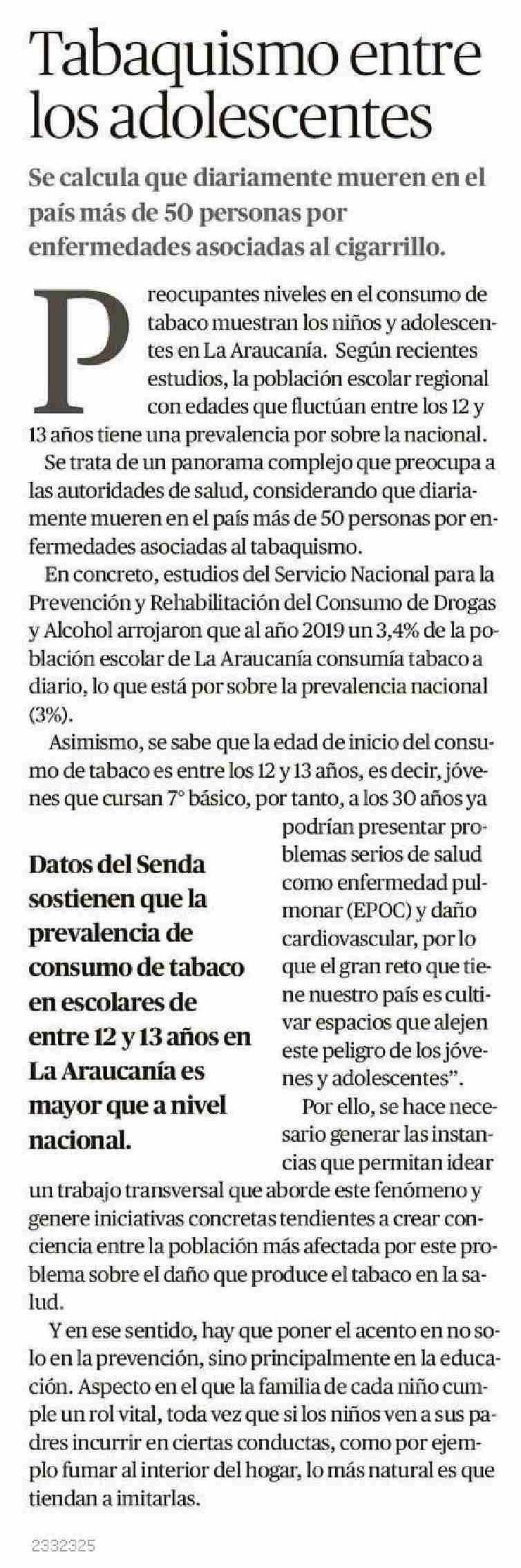 Tabaquismo entre los adolescentes 10-06-2025 El Austral de la Araucanía |