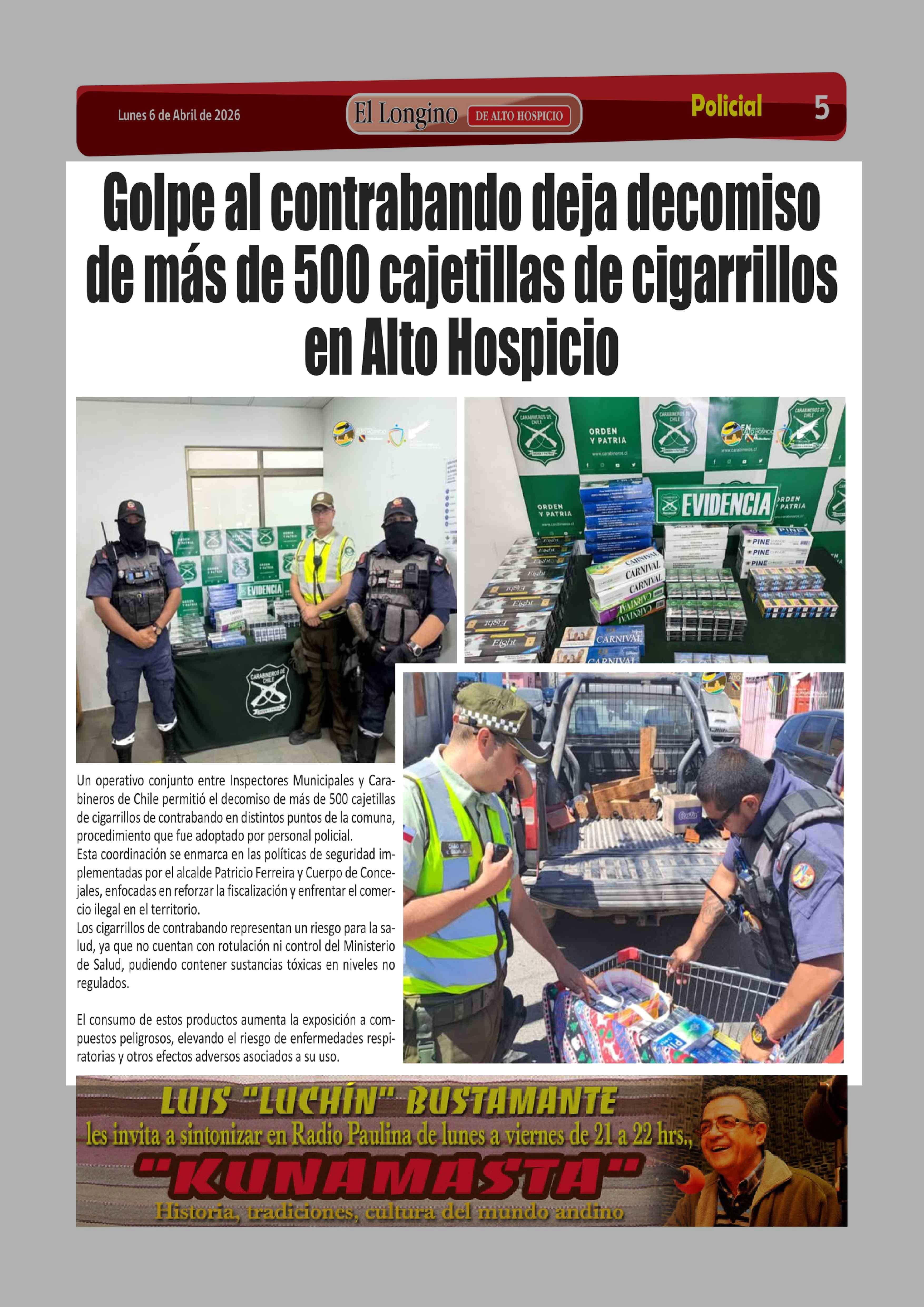 Fuente: El Longino (El Longino - Alto Hospicio) Página(s): 5