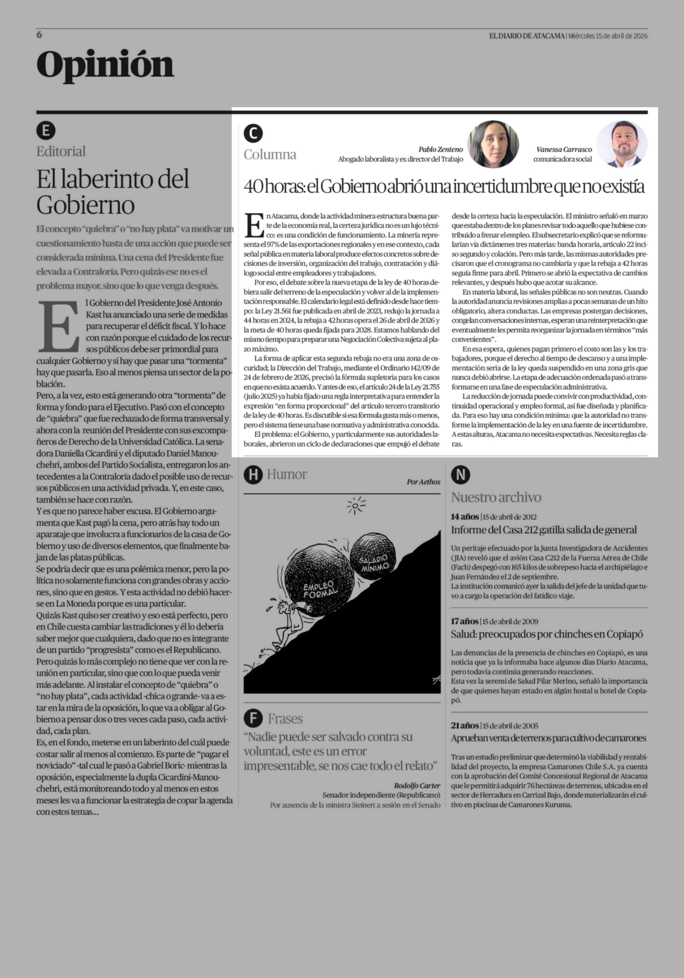 Fecha: 15-04-2026 Sector: Columnas de Opinión Región: Región de Atacama