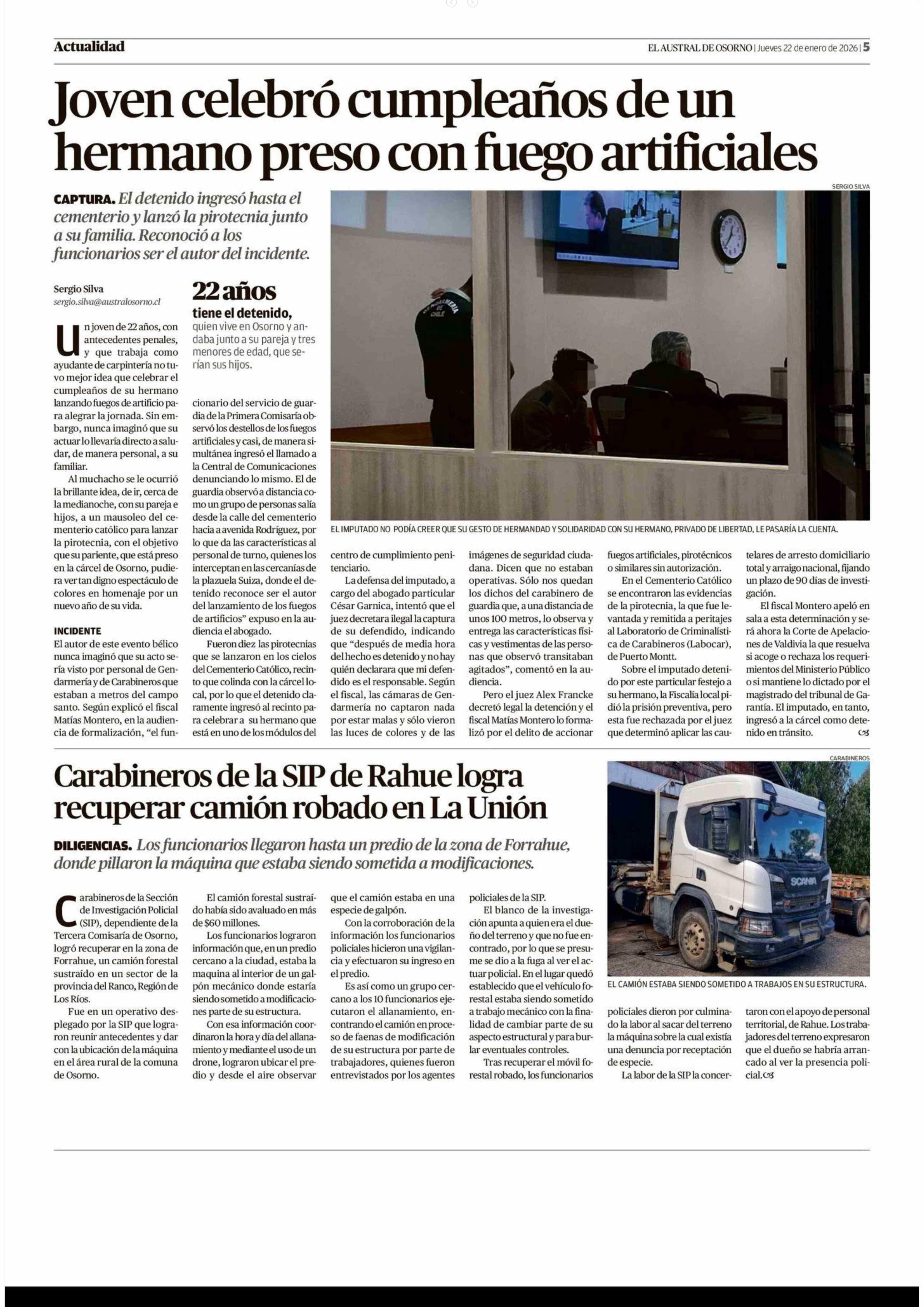Fuente: El Austral de Osorno (El Austral de Osorno) Página(s): 5