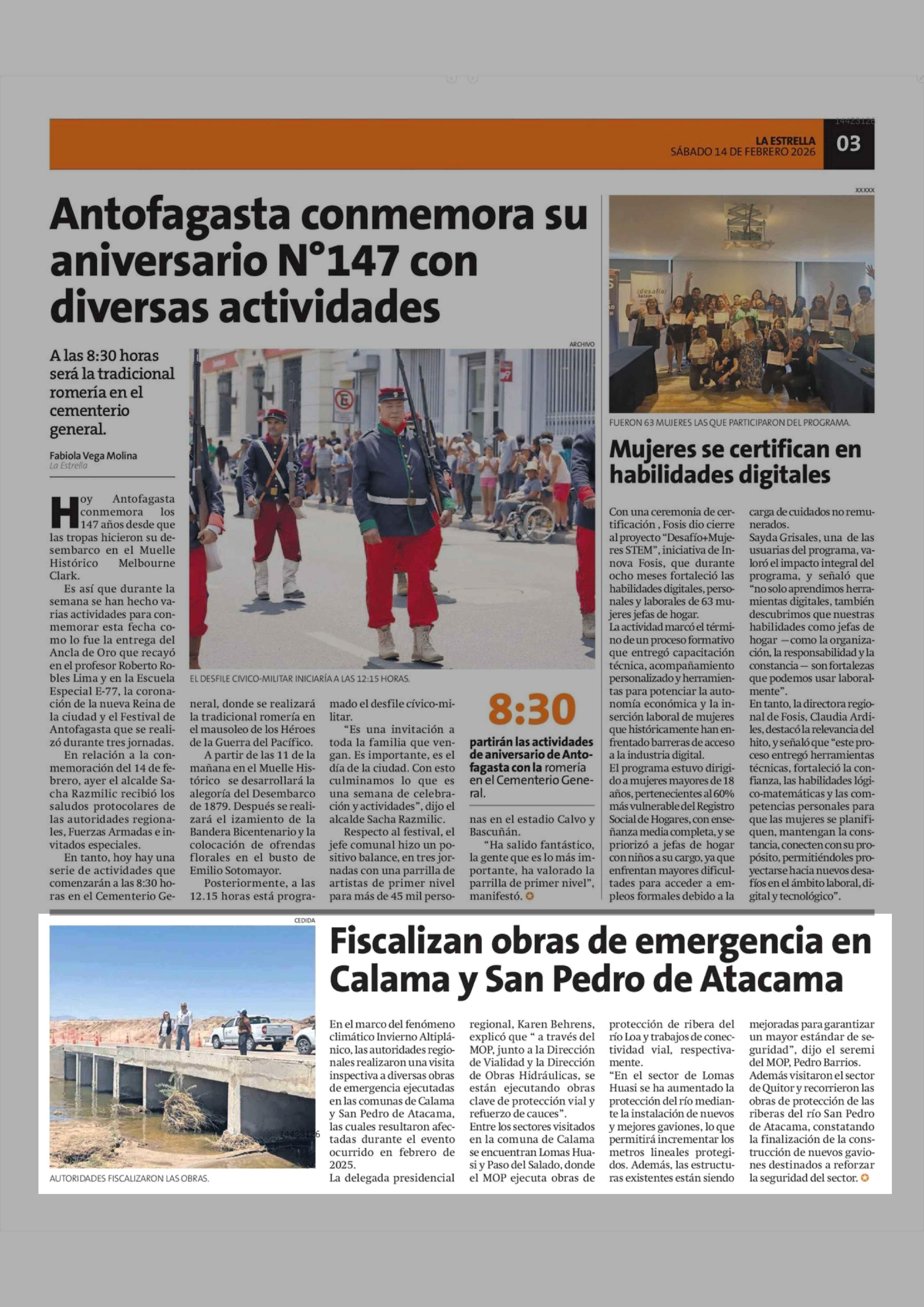 | Fecha: | 15-02-2026 | Sector: | Noticia general | Región: | Región de Antofagasta |