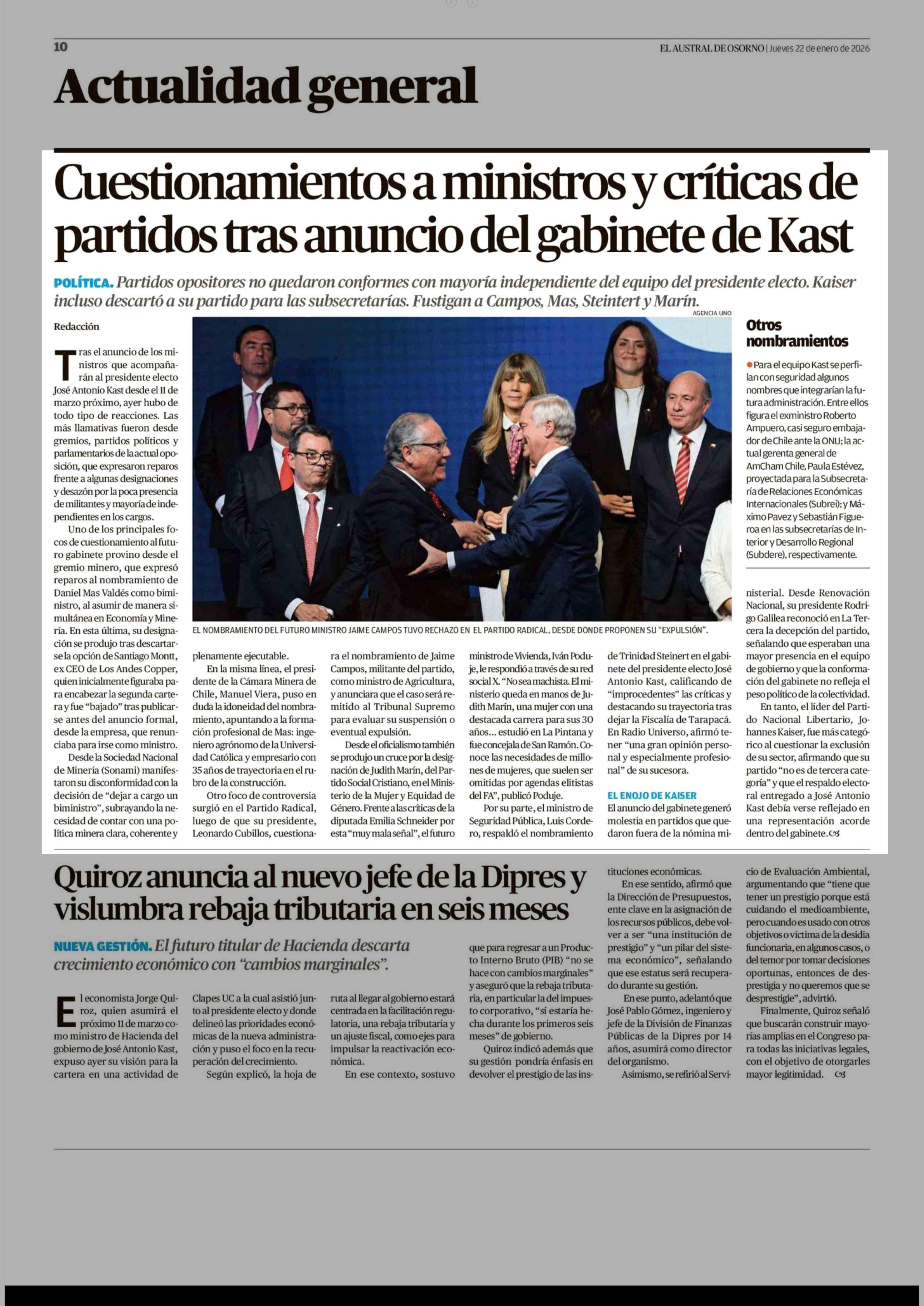 Fuente: El Austral de Osorno (El Austral de Osorno) Página(s): 10