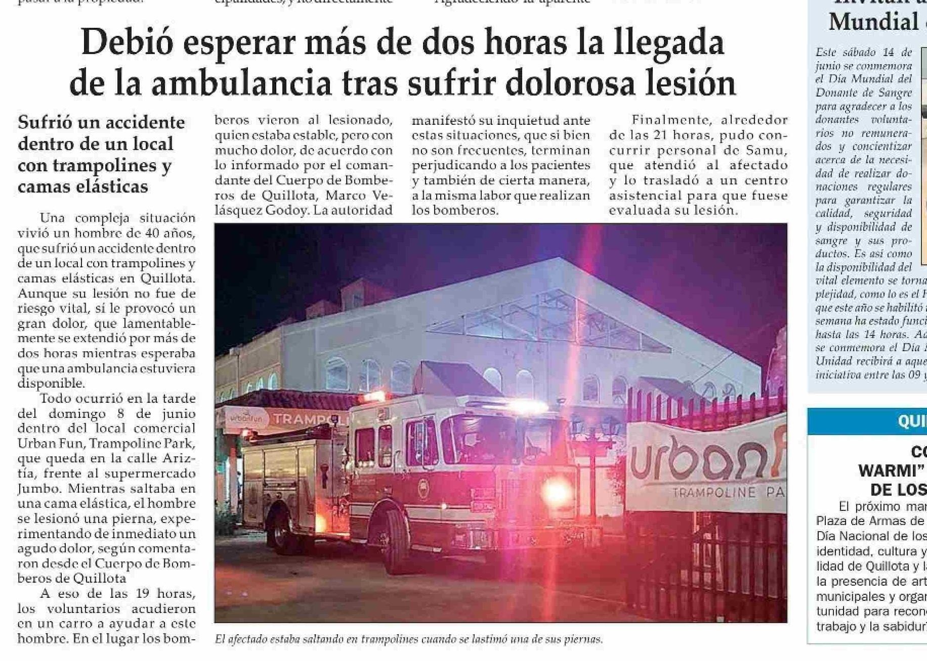 | Título: | Debió esperar más de dos horas la llegada de la ambulancia tras sufrir dolorosa lesión e |