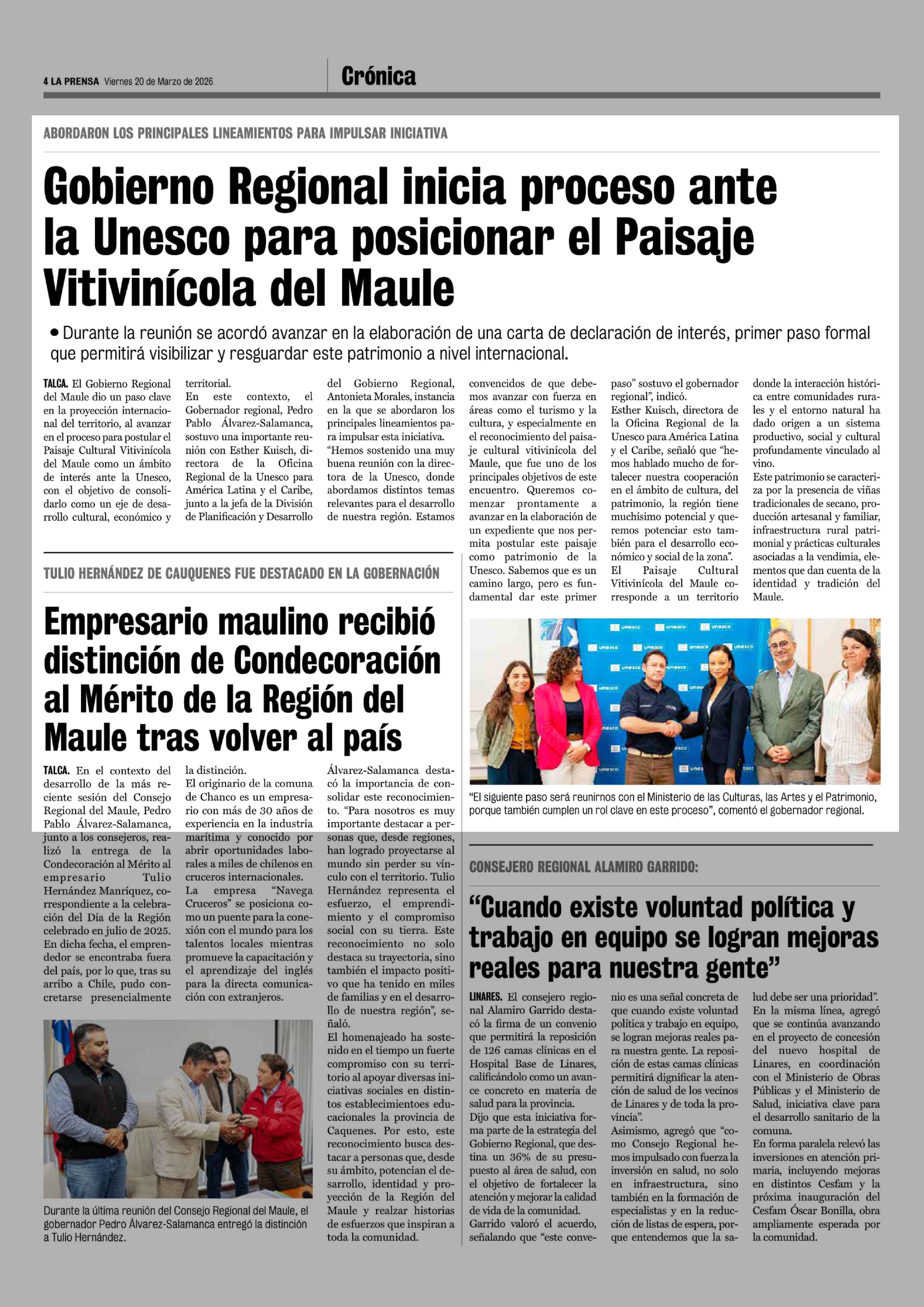 Gobierno Regional inicia proceso ante la Unesco para posicionar el Paisaje Vitivinícola del Maule 20-03-2026 La Prensa de Curicó |