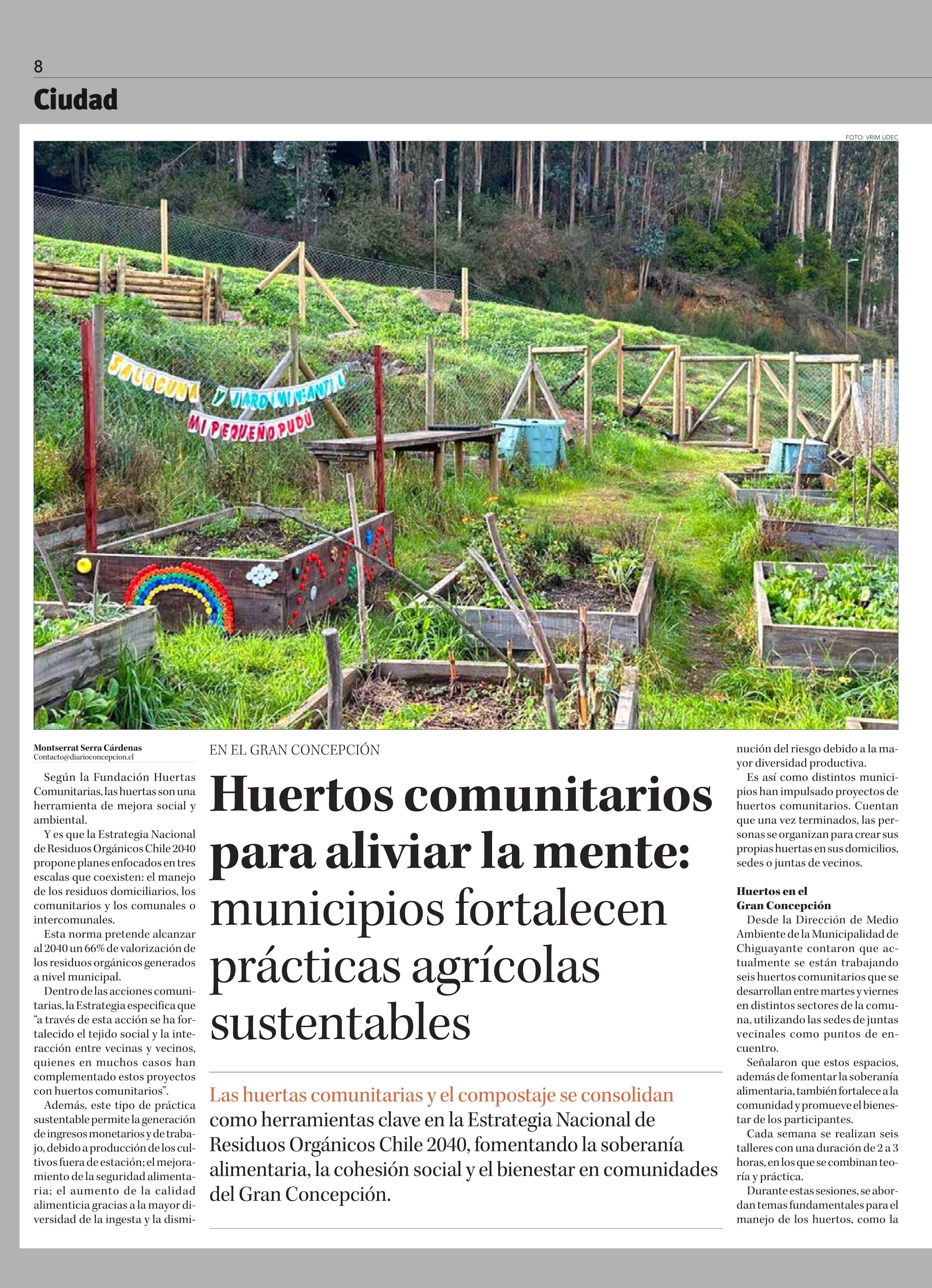 Huertos comunitarios para aliviar la mente: municipios fortalecen prácticas agrícolas sustentables 14-01-2025 Diario Concepción |