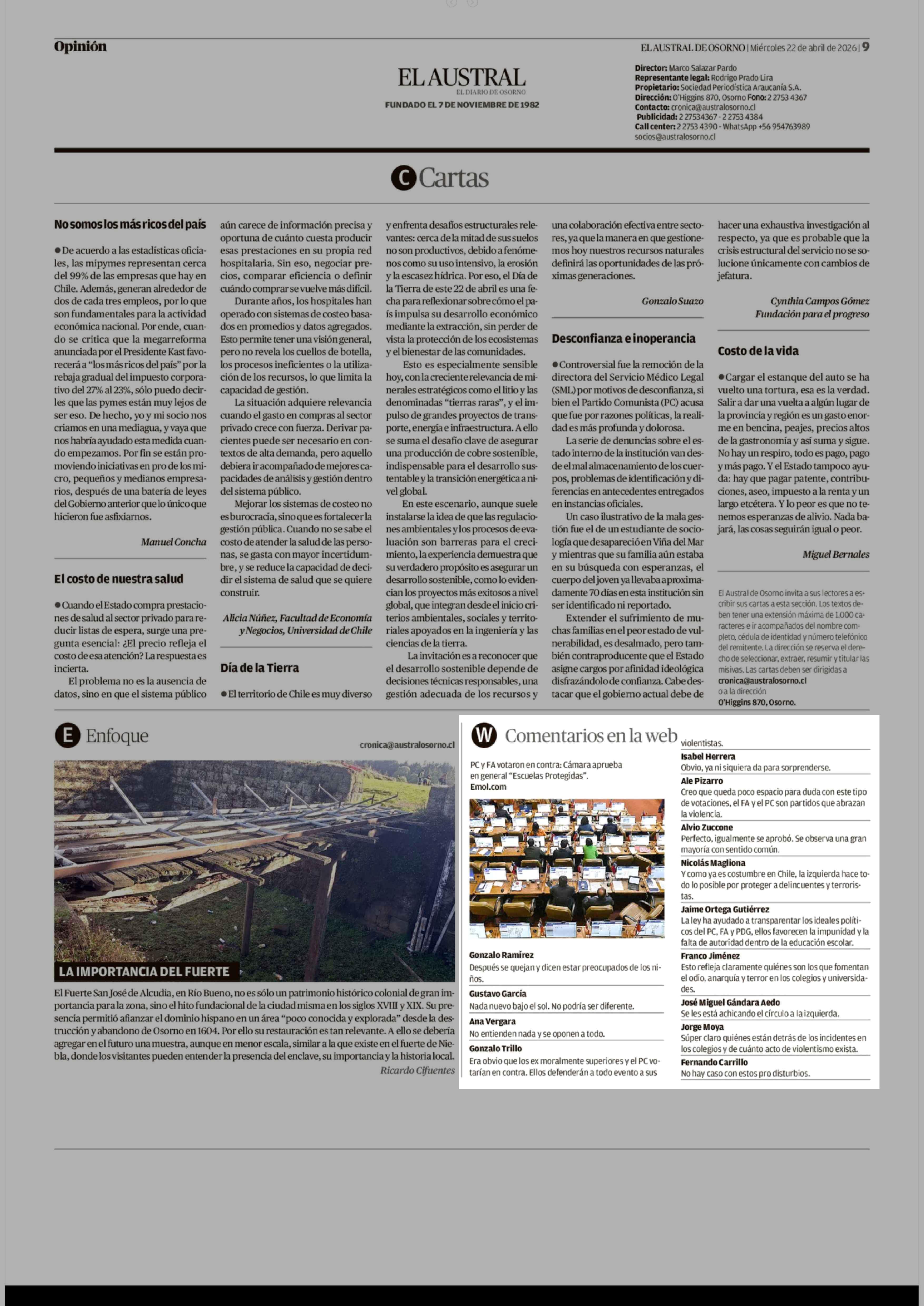 W Comentarios en la web 22-04-2026 El Austral de Osorno |