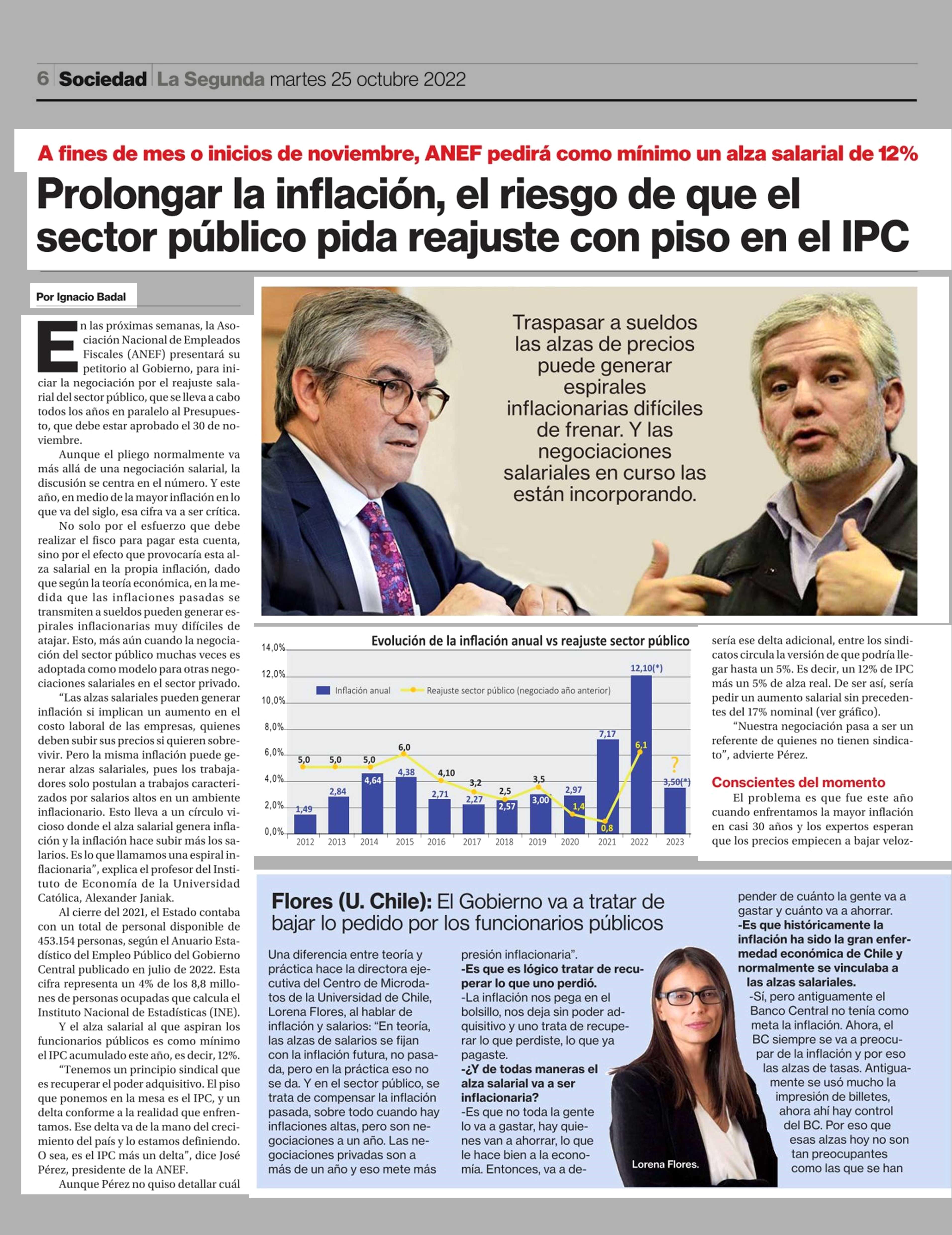 Prolongar la inflación, el riesgo de que el sector público pida reajuste con piso en el IPC 25-10-2022 La Segunda |