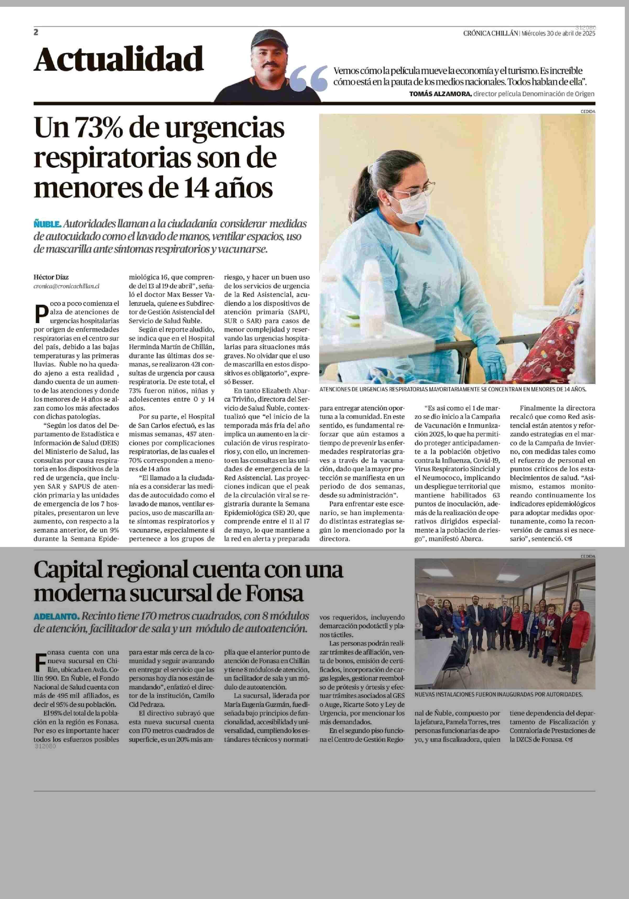 Actualidad Actualidad respiratorias son de menores de 14 años 30-04-2025 Crónica de Chillán |