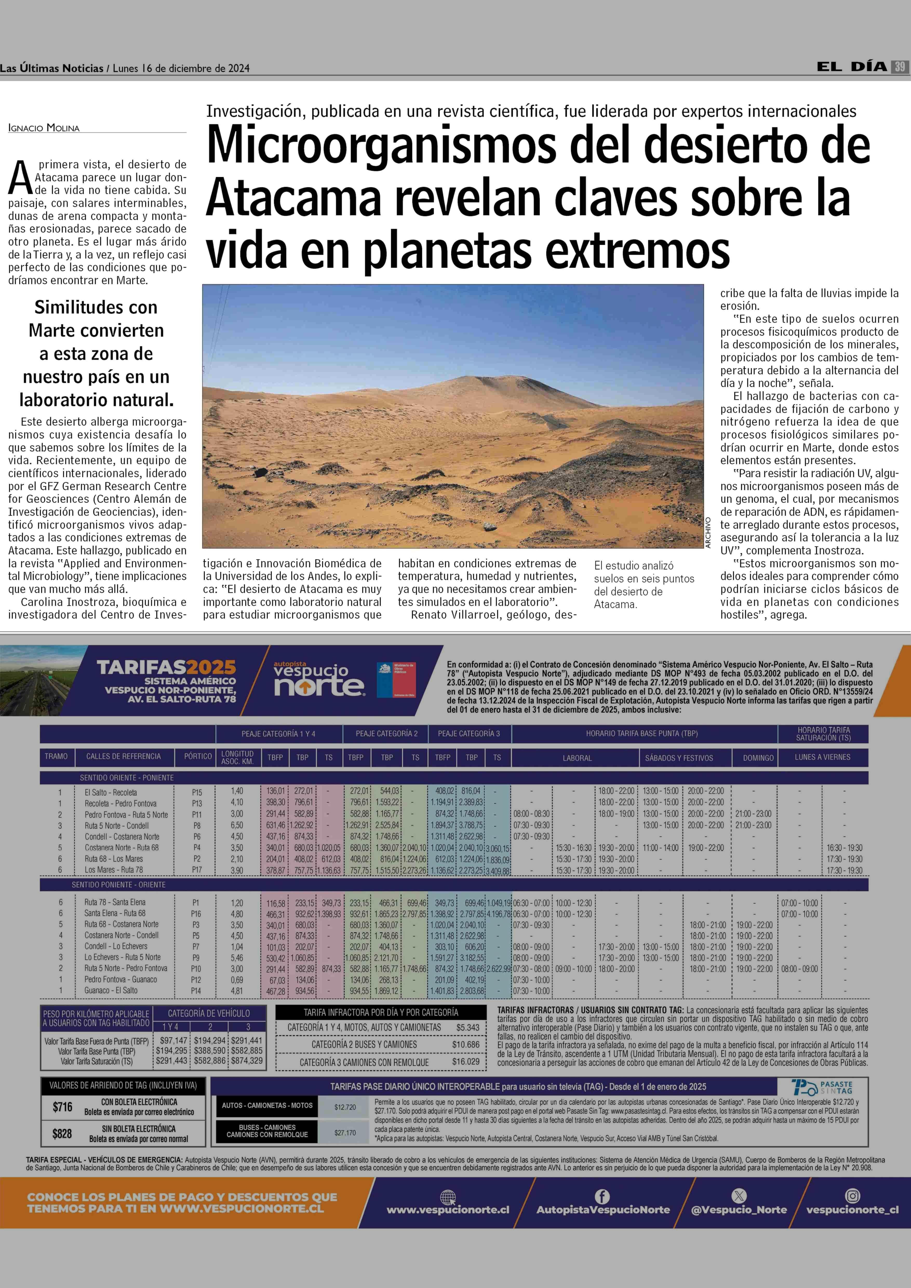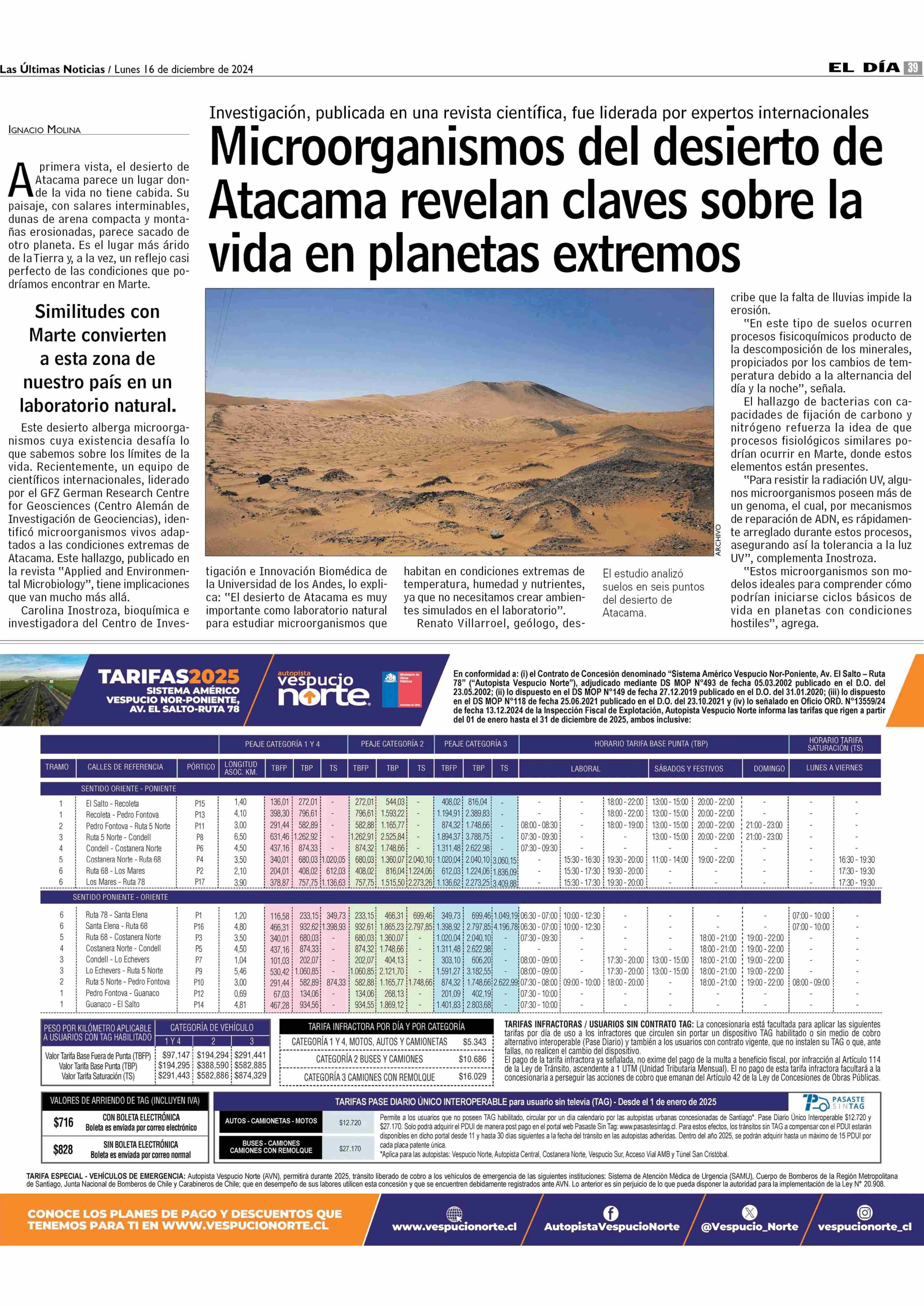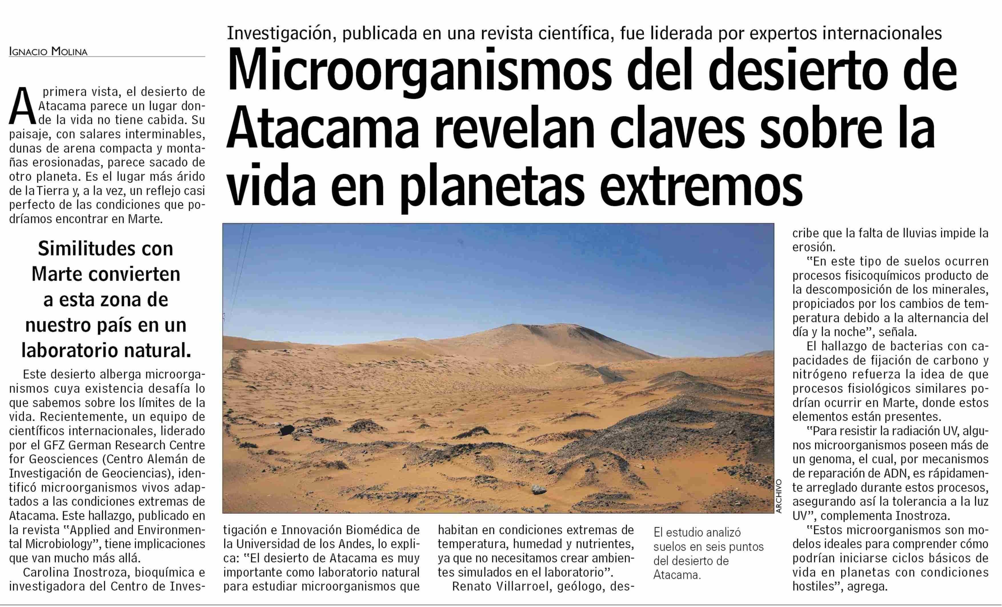 Microorganismos del desierto de Atacama revelan claves sobre la vida en planetas extremos 16-12-2024 Las Últimas Noticias |