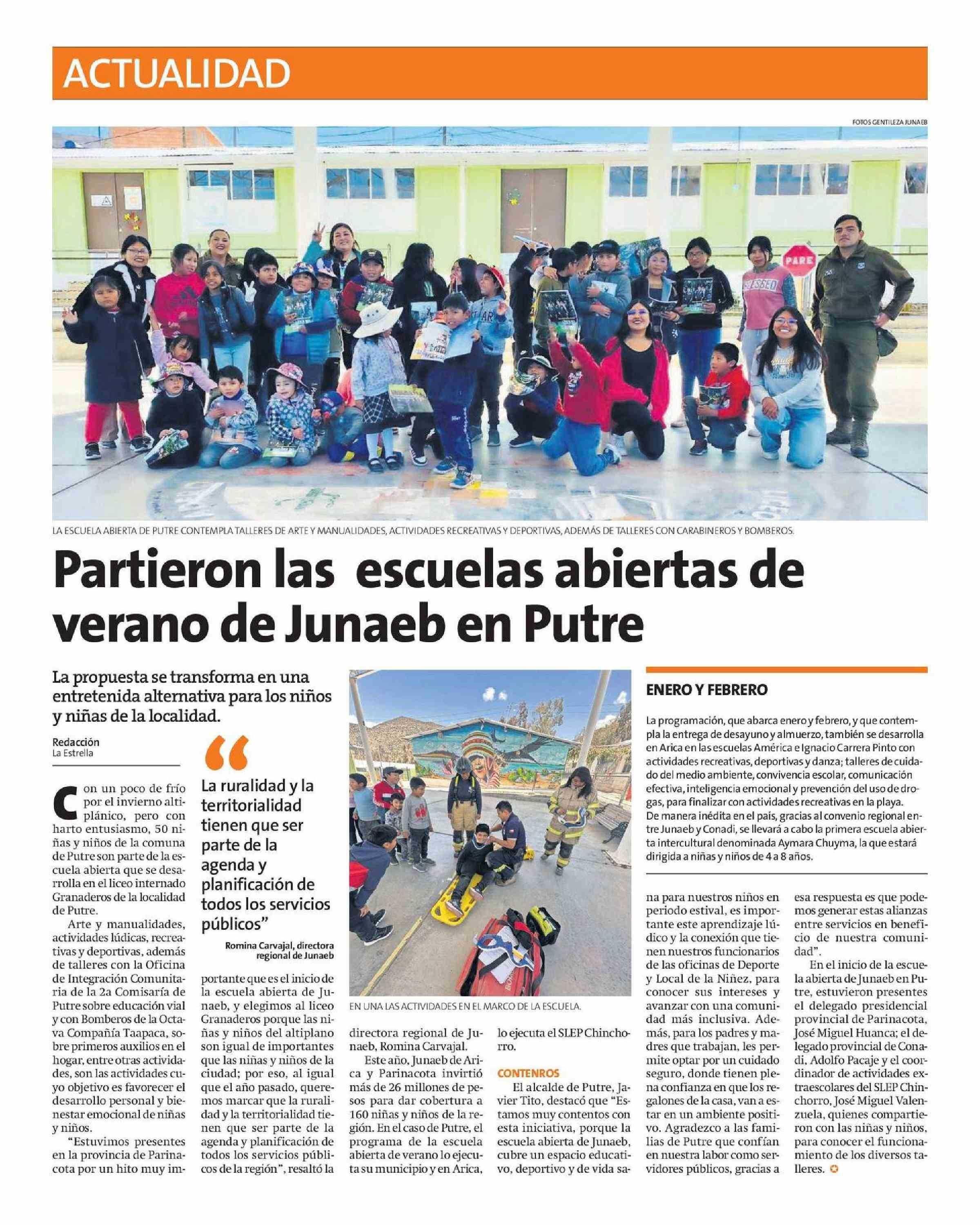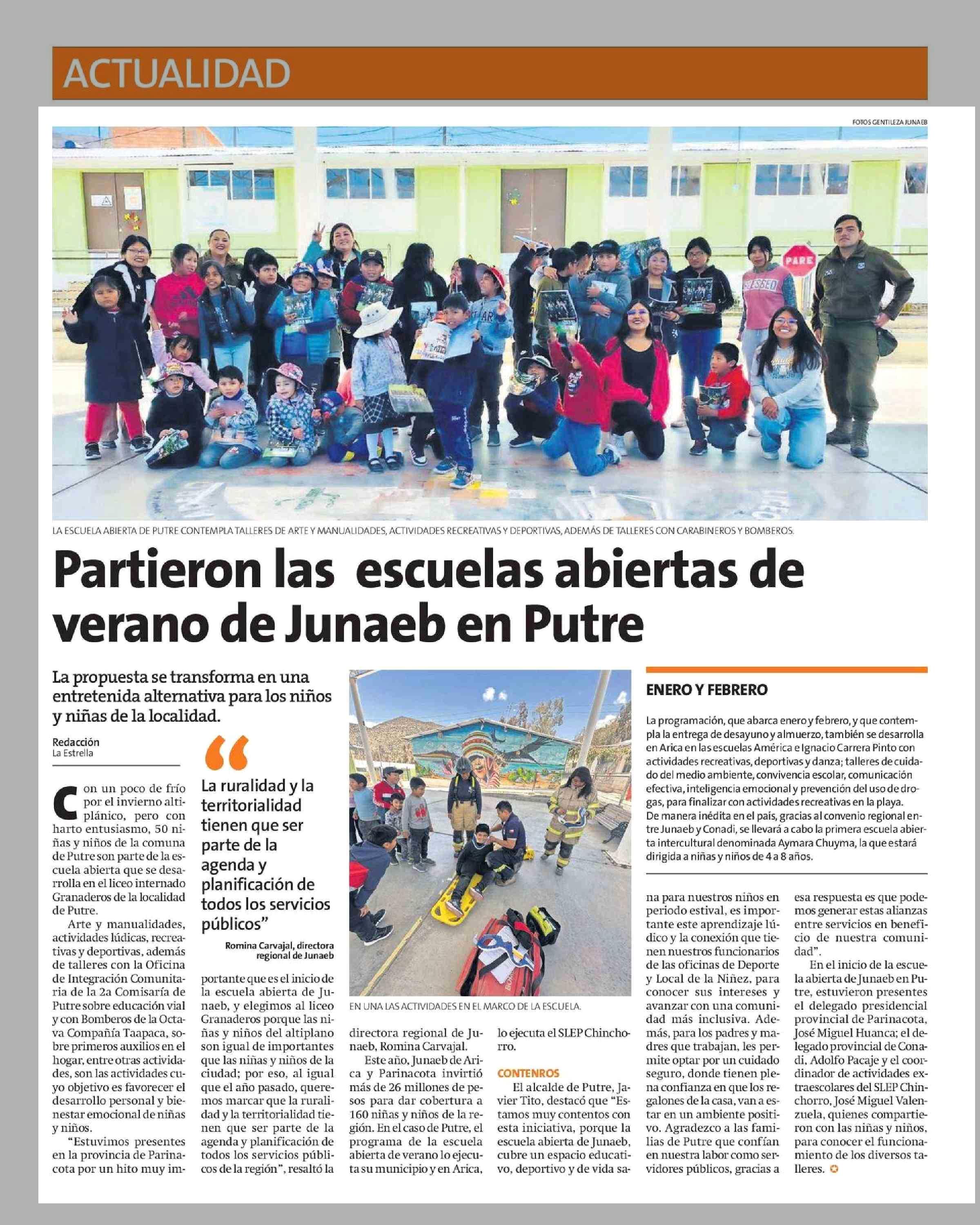 Partieron las escuelas abiertas de verano de Junaeb en Putre 20-01-2025 La Estrella de Arica |