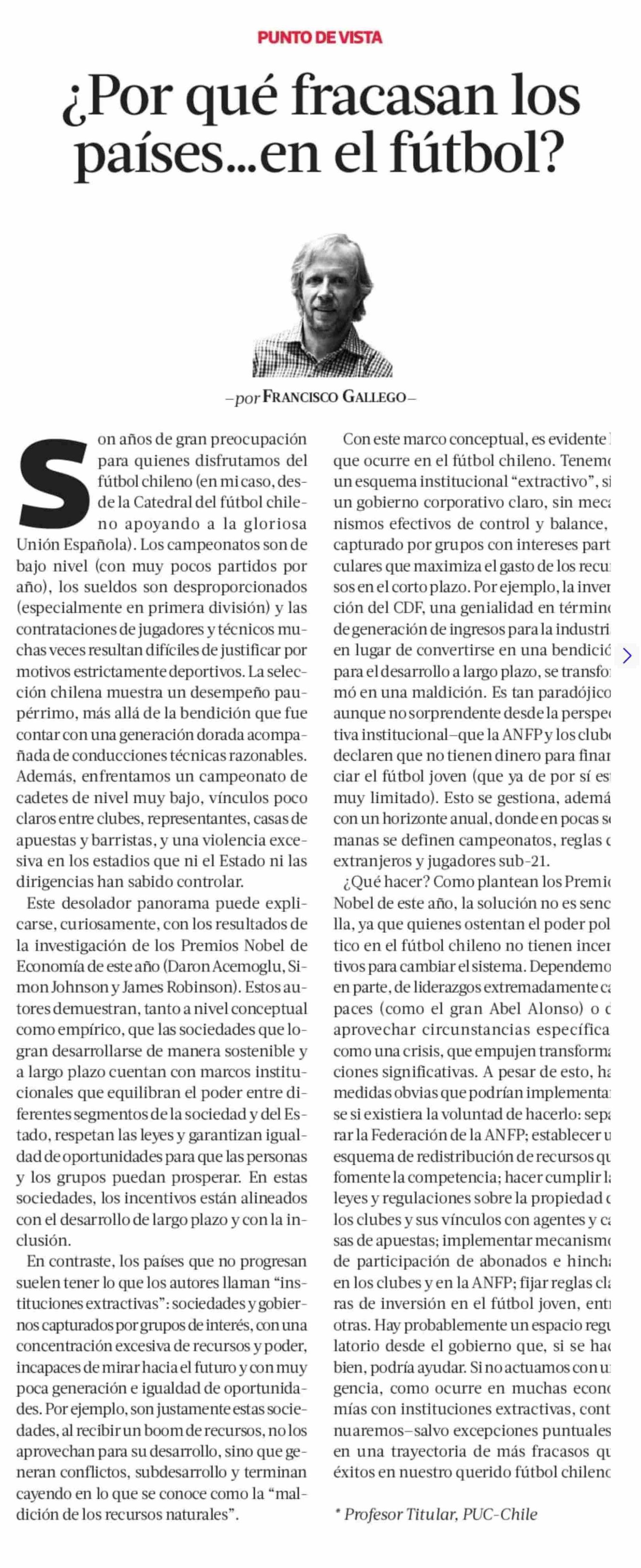 ¿Por qué fracasan los países...en el fútbol? 09-12-2024 La Tercera |