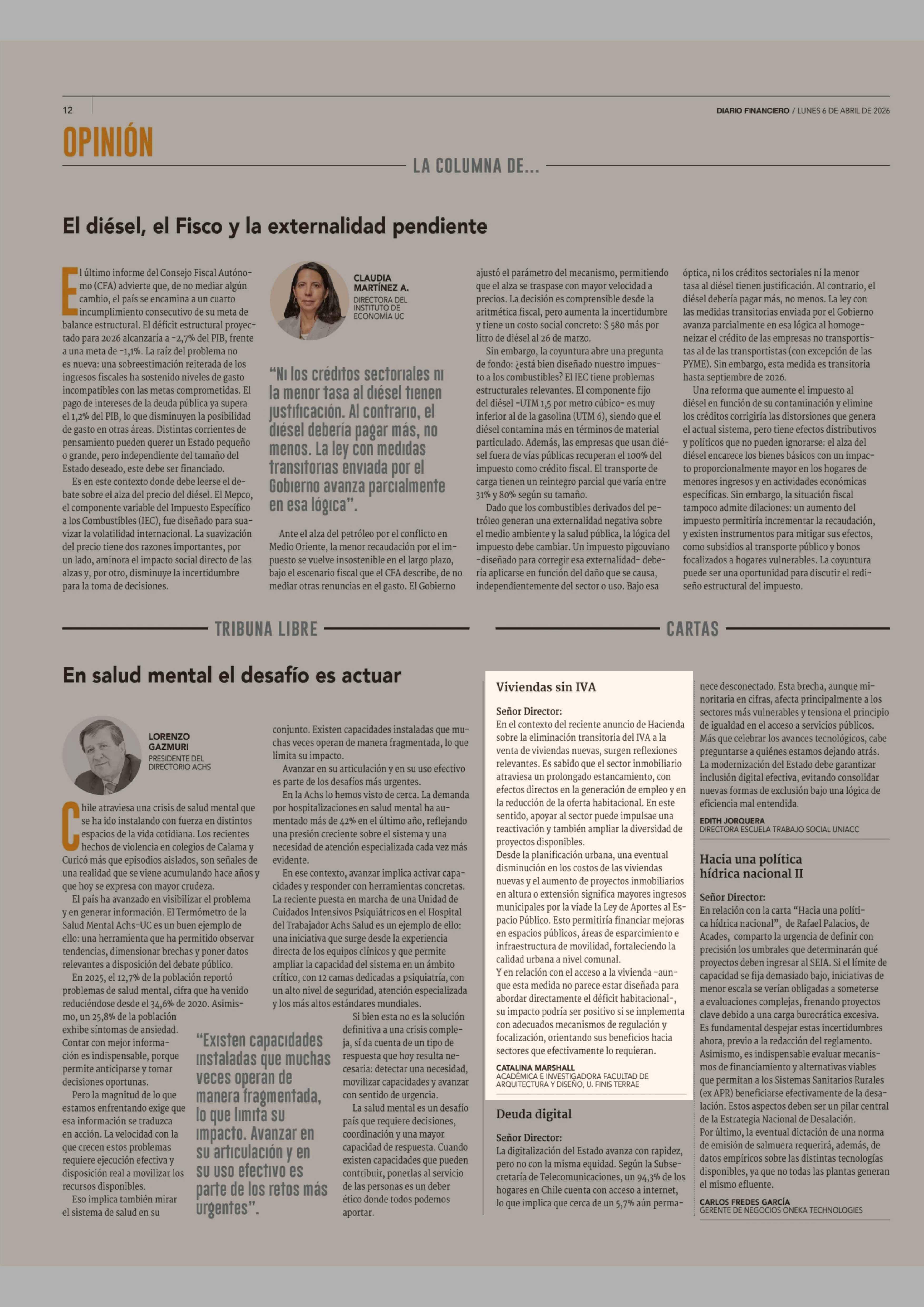 Fuente: Diario Financiero (Diario Financiero) Página(s): 12