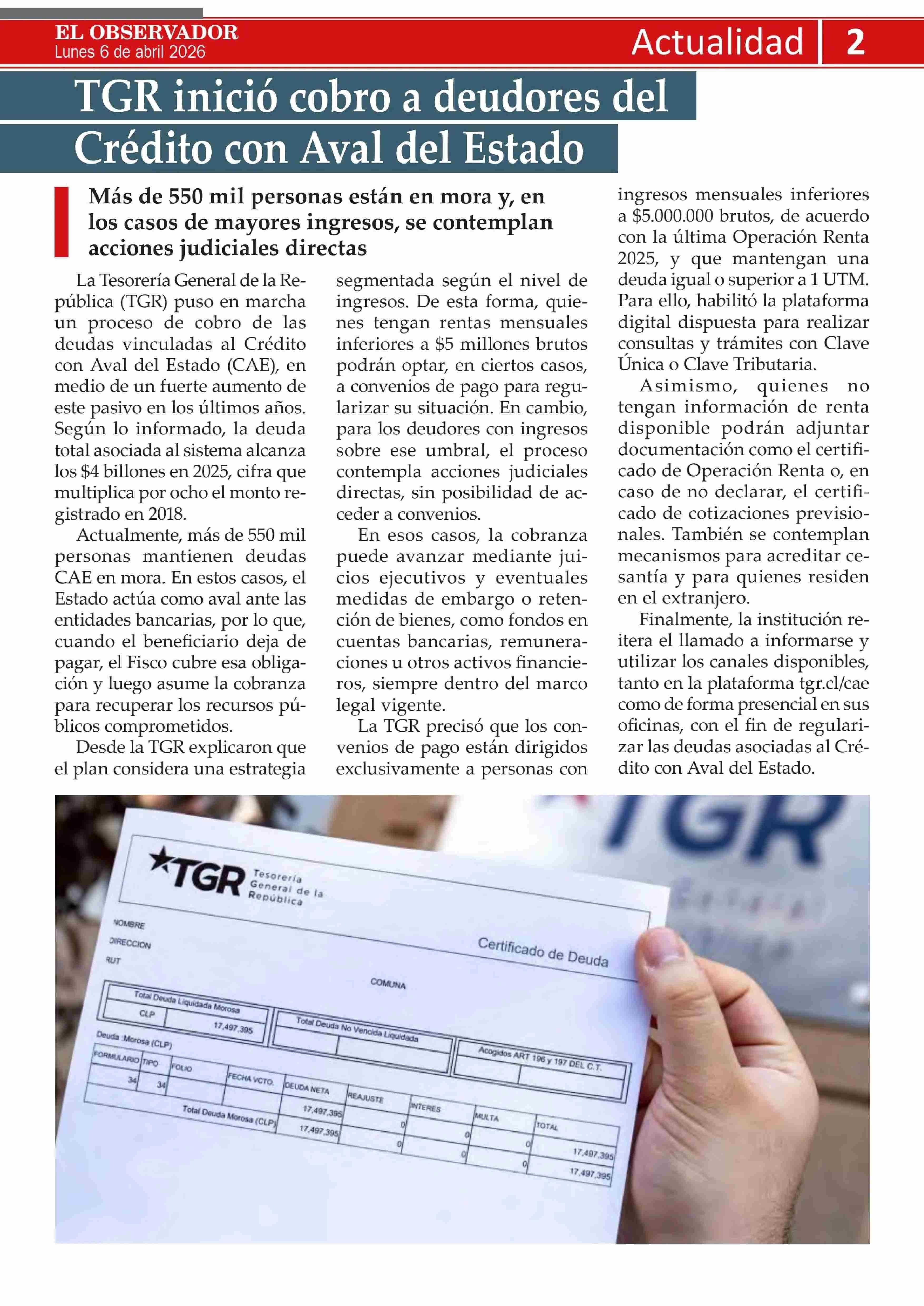Título: TGR inició cobro a deudores del Crédito con Aval del Estado