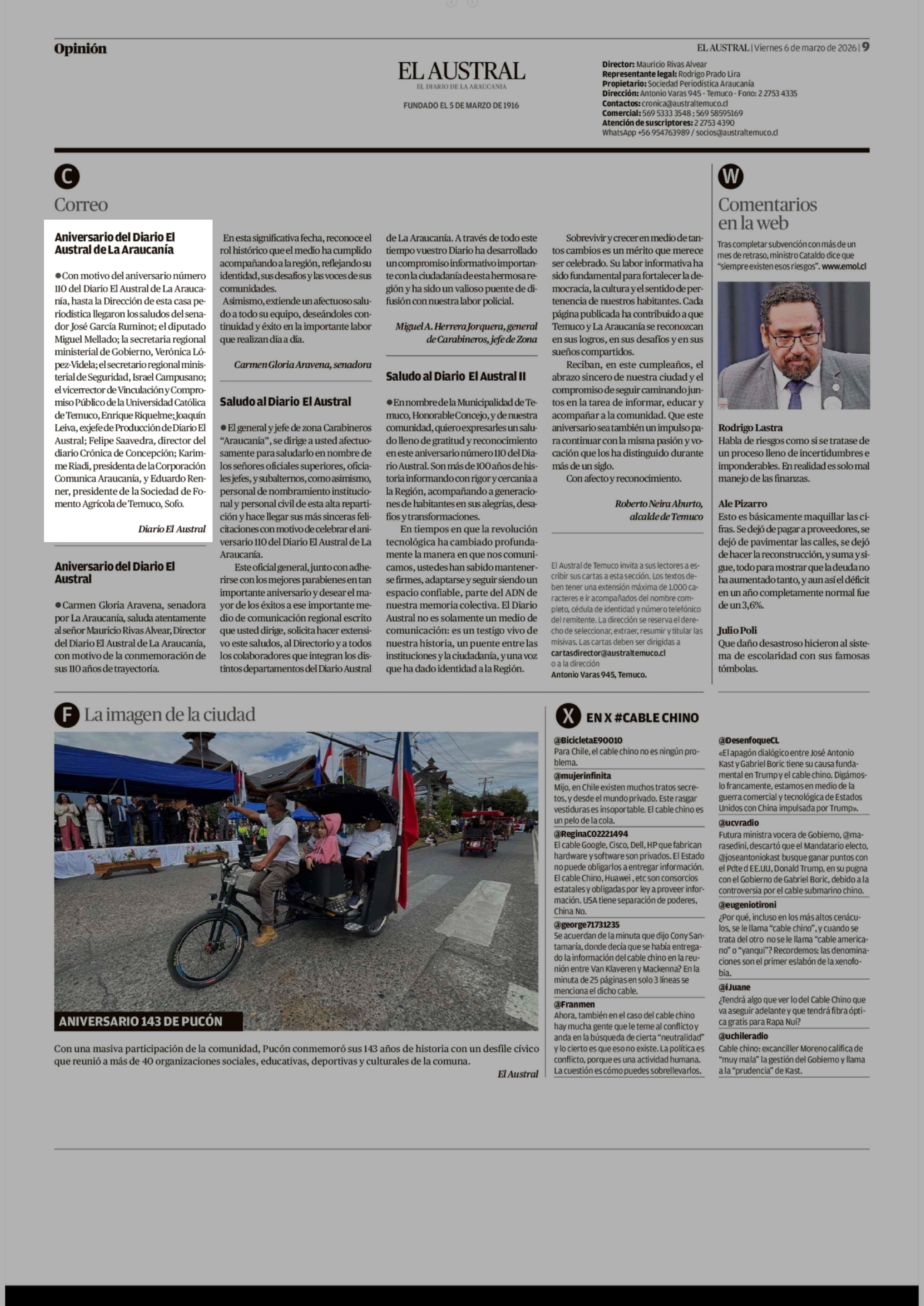 Cartas: Aniversario del Diario El Austral de La Araucania
