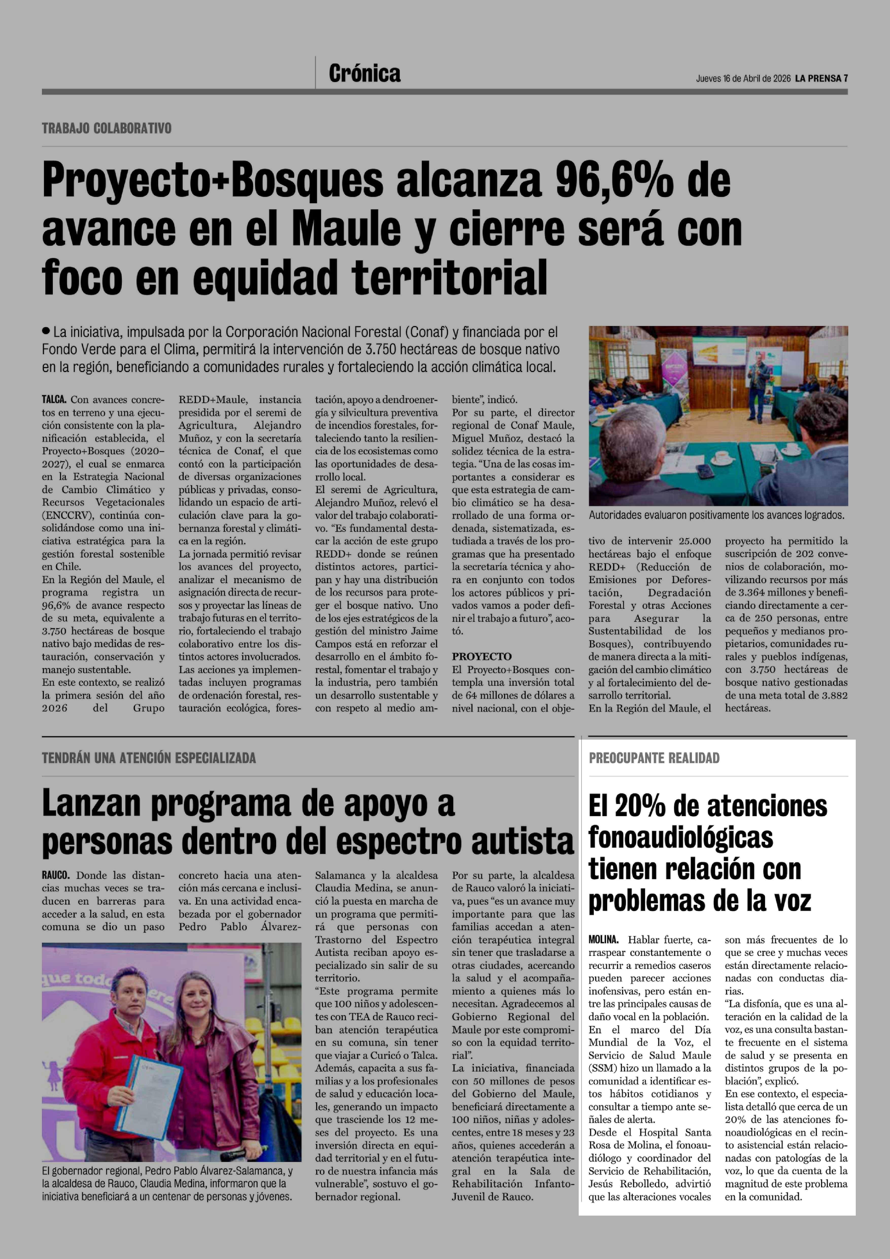 | Fecha: | 16-04-2026 | Sector: | Noticia general | Región: | Región del Maule |