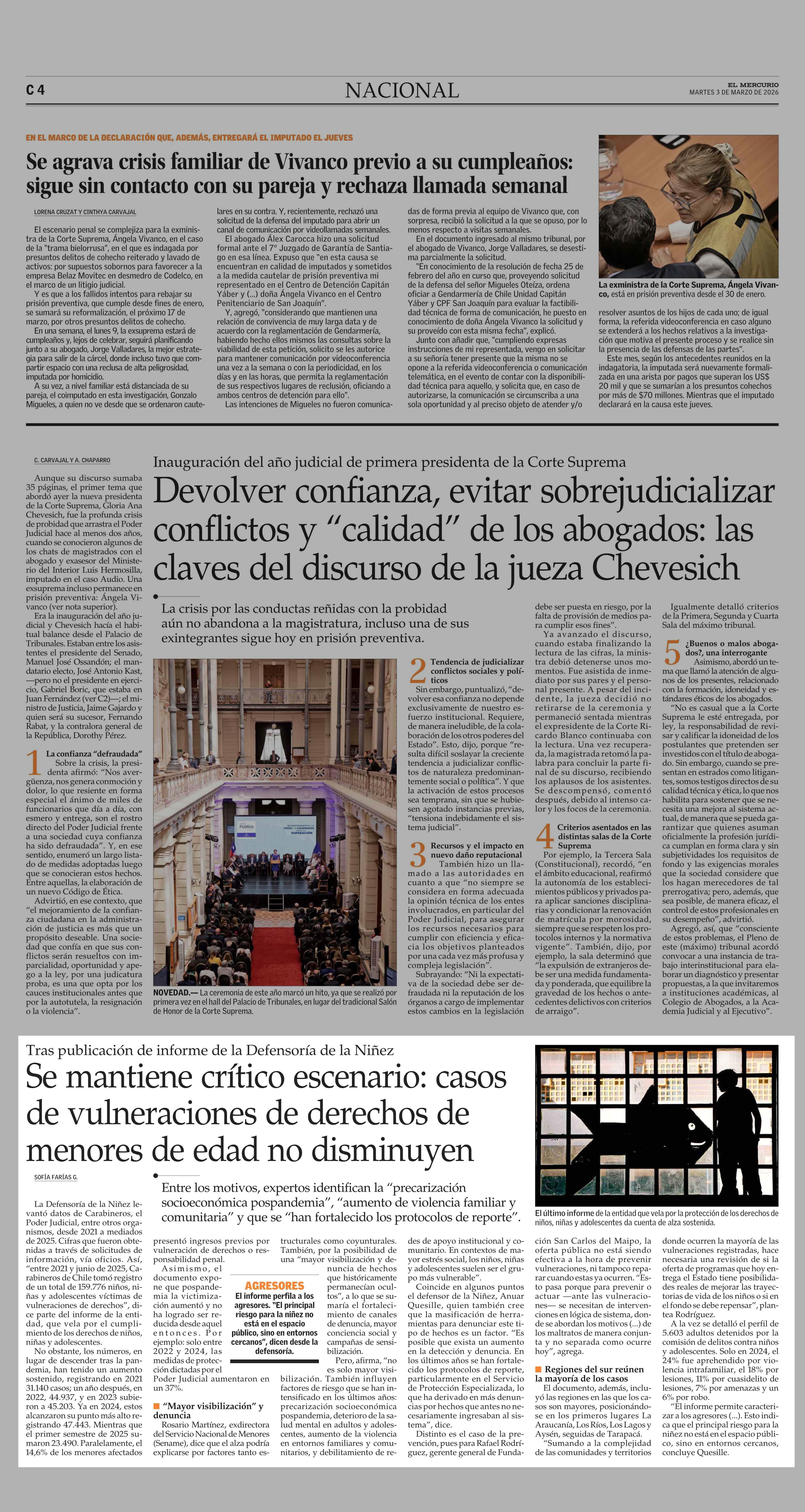 Se mantiene crítico escenario: casos de vulneraciones de derechos de menores de edad no disminuyen 03-03-2026 El Mercurio |