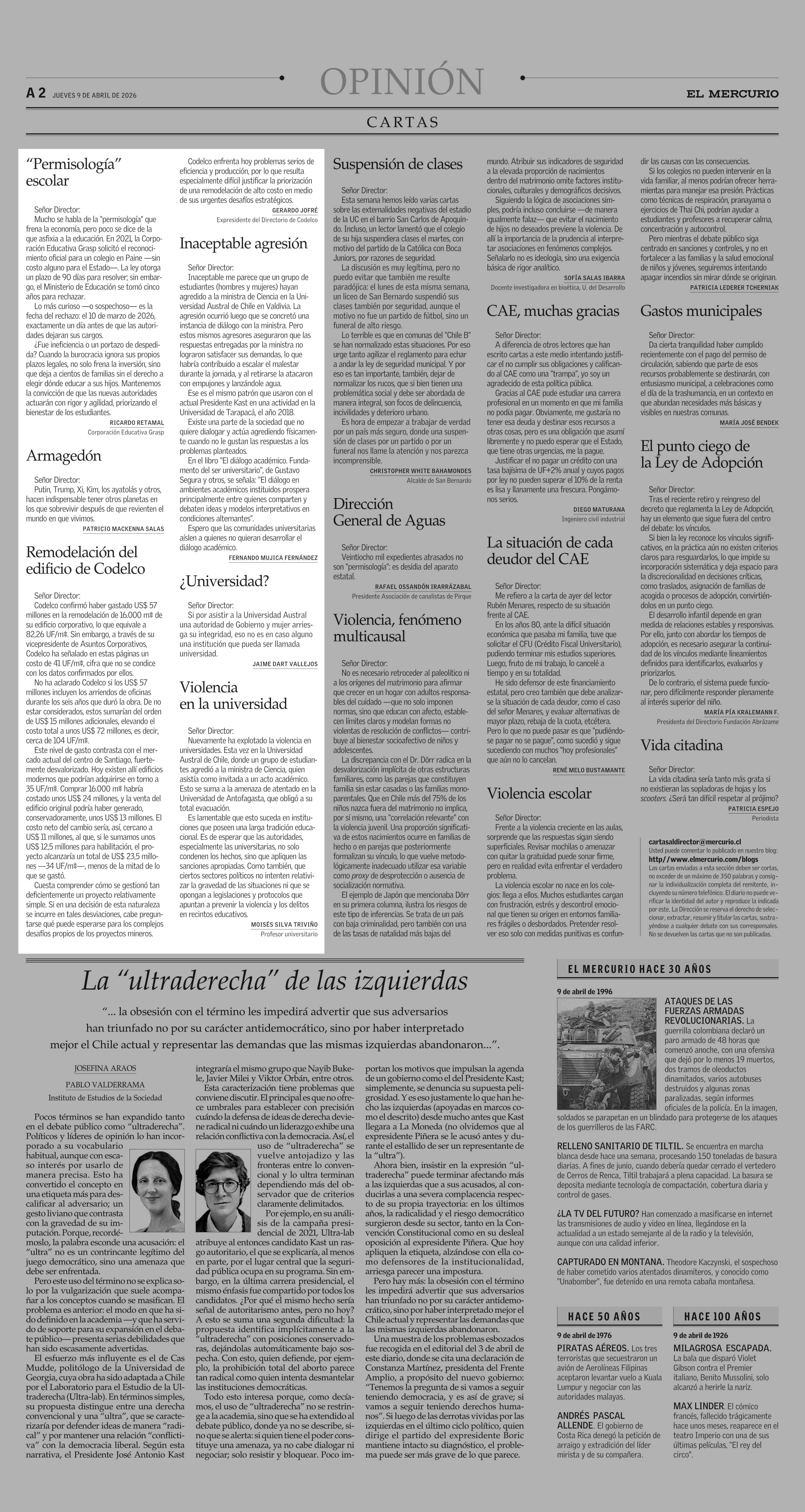 Cartas: Remodelación del edificio de Codelco 09-04-2026 El Mercurio |