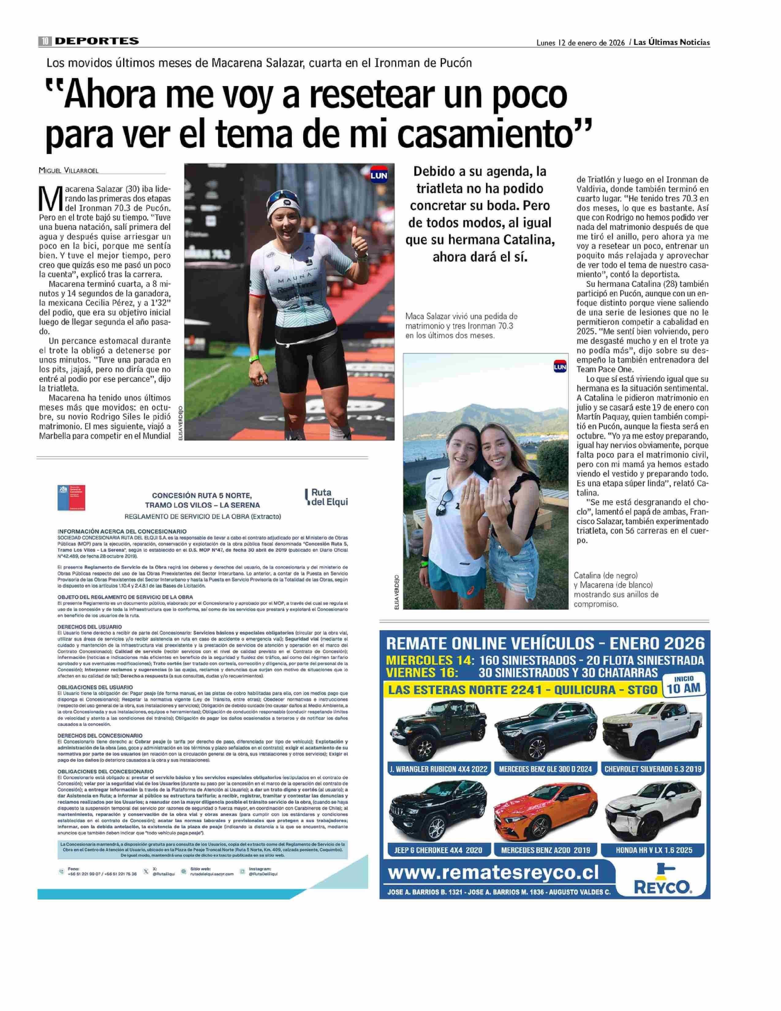 Extractos: CONCESIÓN RUTA 5 NORTE, TRAMO LOS VILOS - LA SERENA REGLAMENTO DE SERVICIO DE LA OBRA (Extracto) 12-01-2026 Las Últimas Noticias |