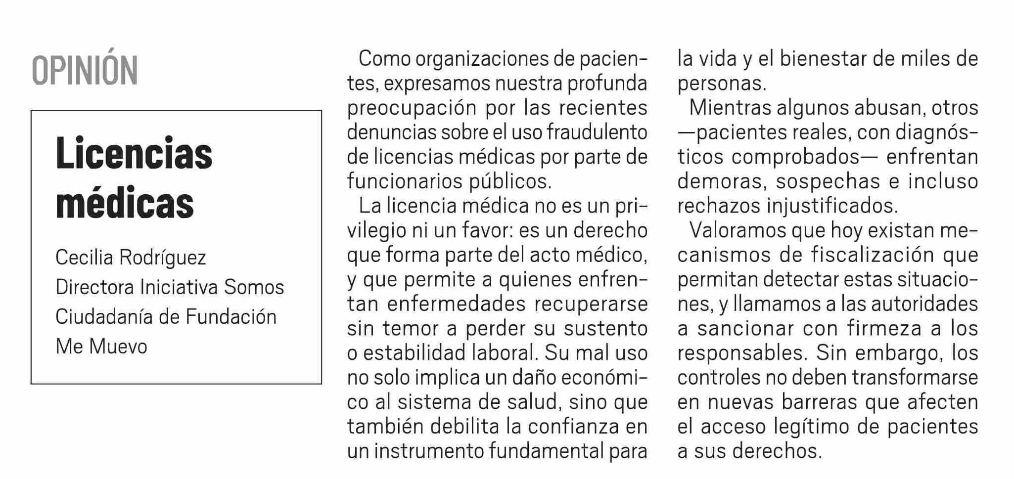 | Título: | COLUMNAS DE OPINIÓN: Licencias médicas |