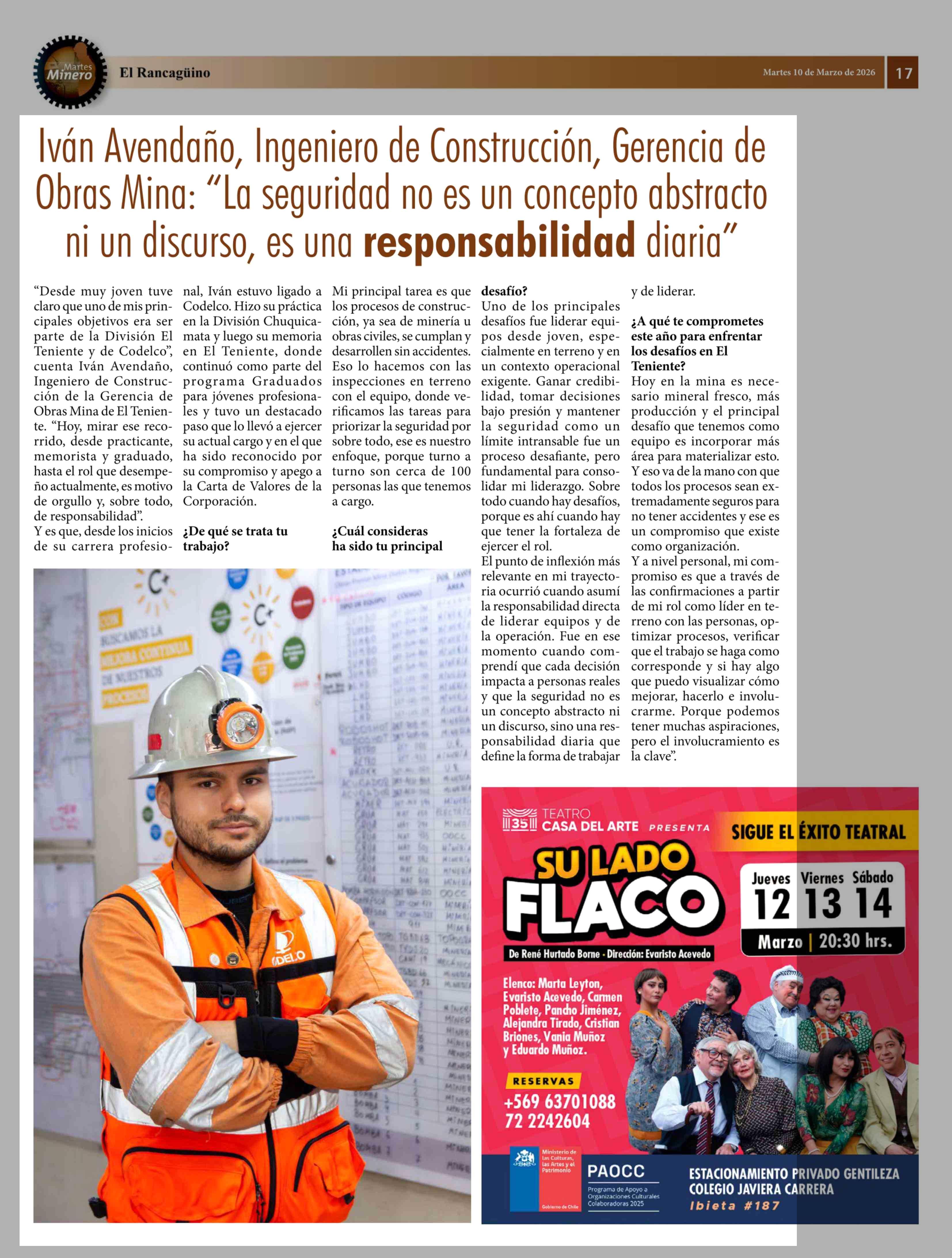 Título: Iván Avendaño, Ingeniero de Construcción, Gerencia de Obras Mina: "La seguridad no es un concepto abstracto ni un discurso, es una responsabilidad diaria"