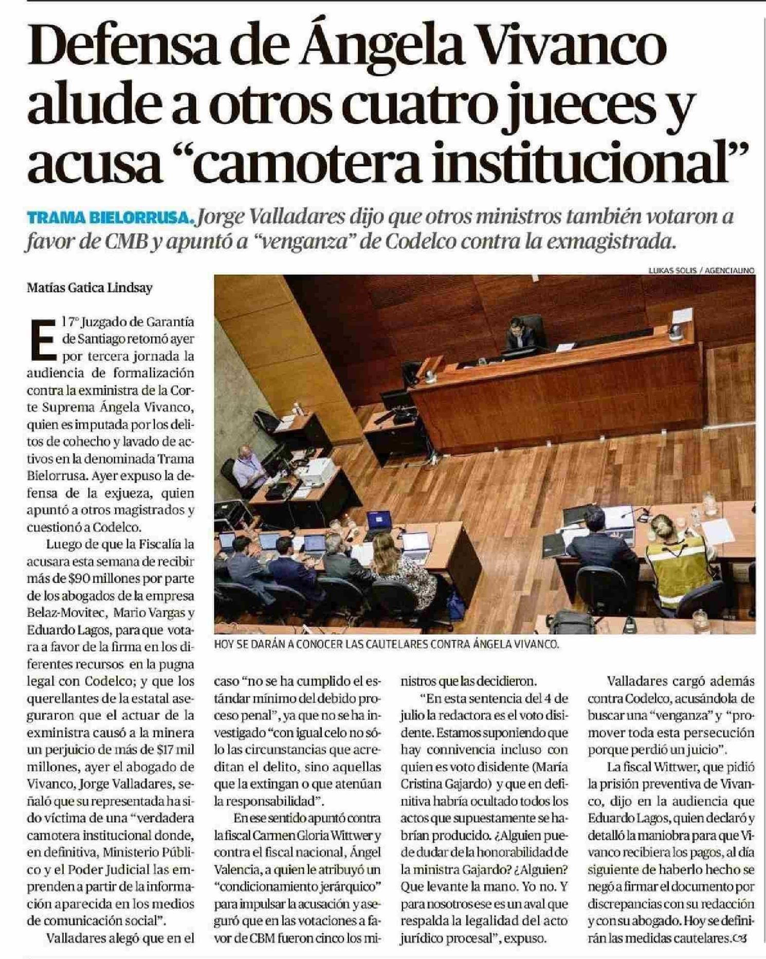 | Título: | Defensa de Ángela Vivanco alude a otros cuatro jueces y acusa “camotera institucional” |