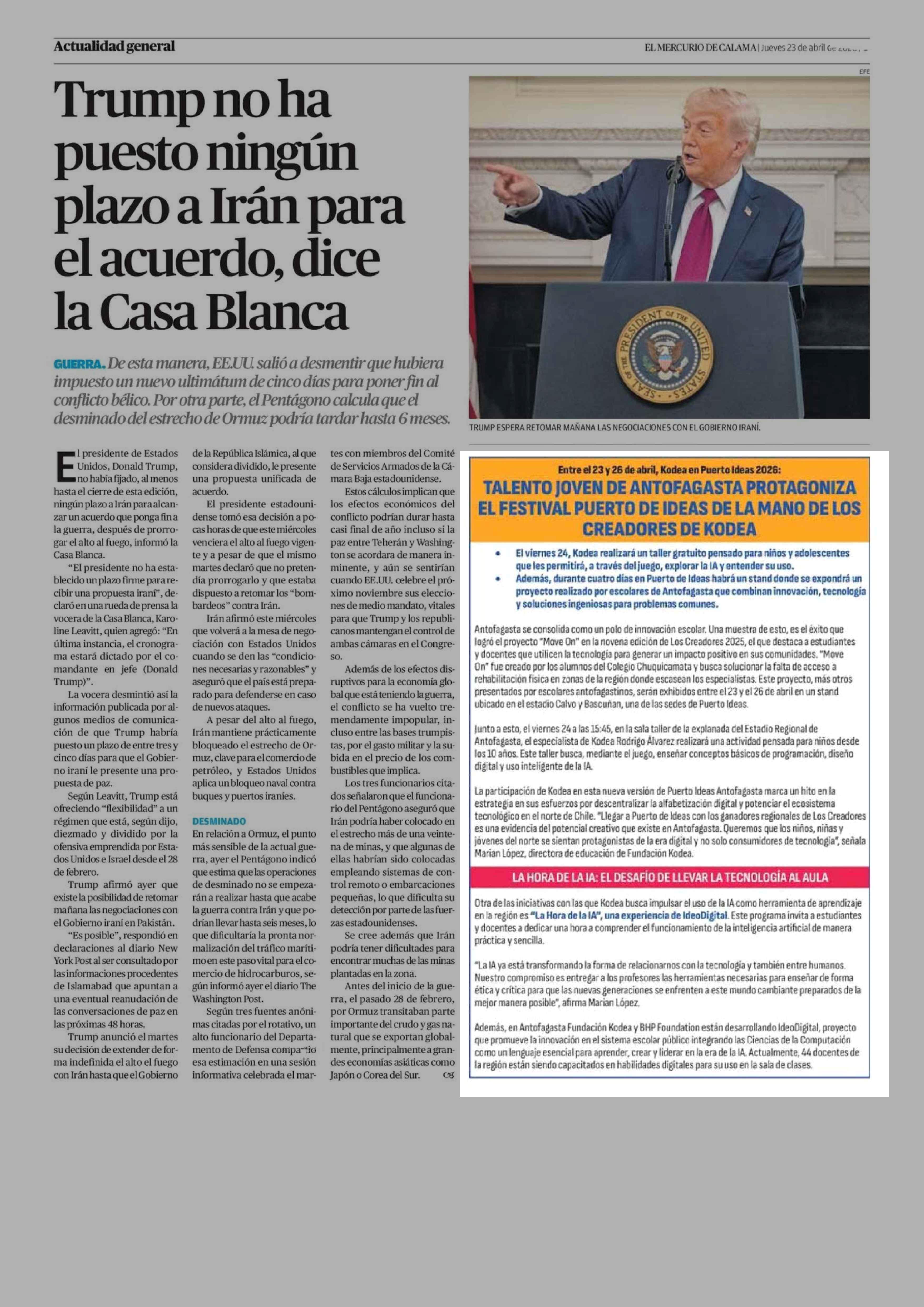 EXTRACTOS: TALENTO JOVEN DE ANTOFAGASTA PROTAGONIZA 23-04-2026 El Mercurio de Calama |