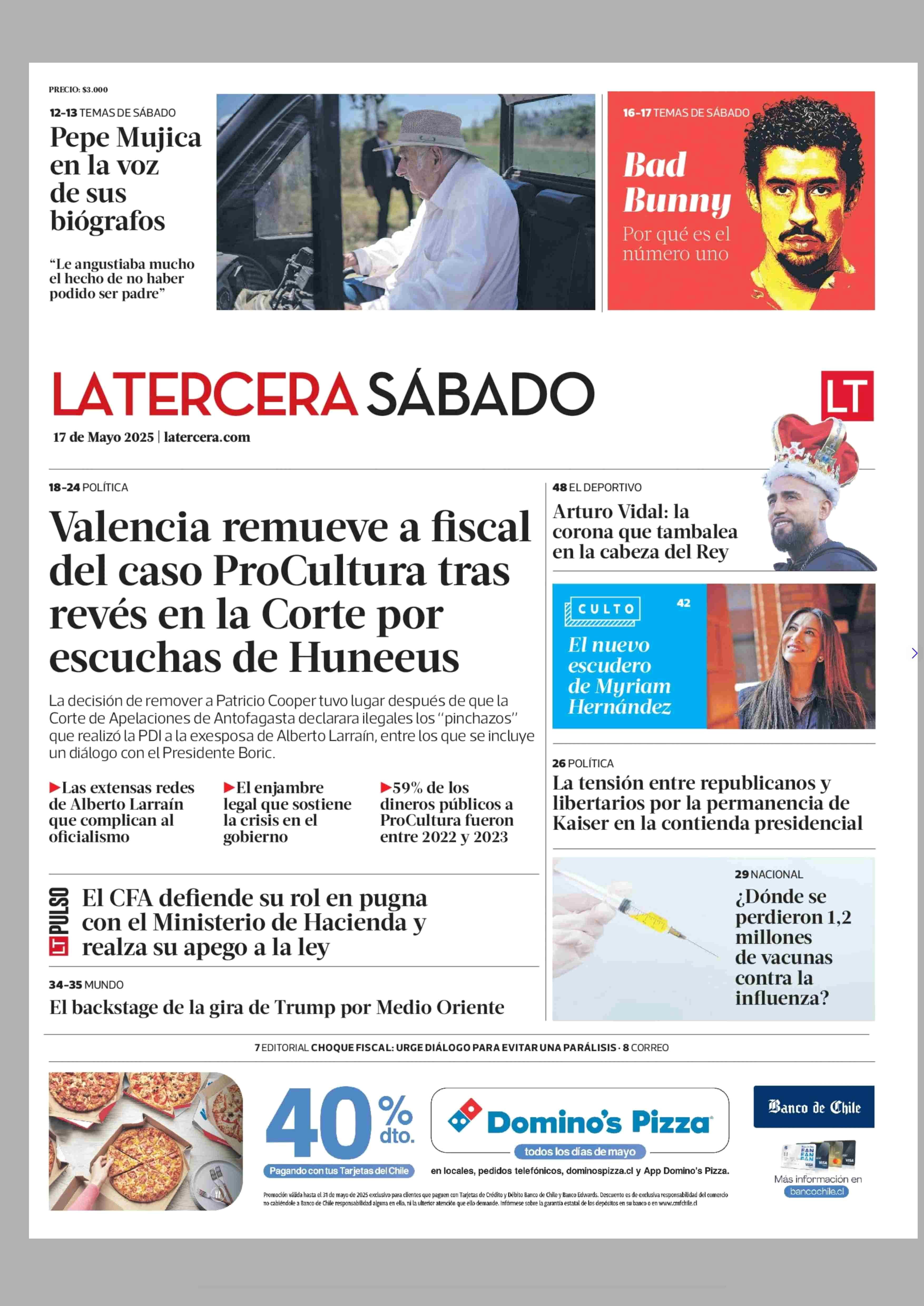 PORTADA LA TERCERA - CHILE 17-05-2025 La Tercera |