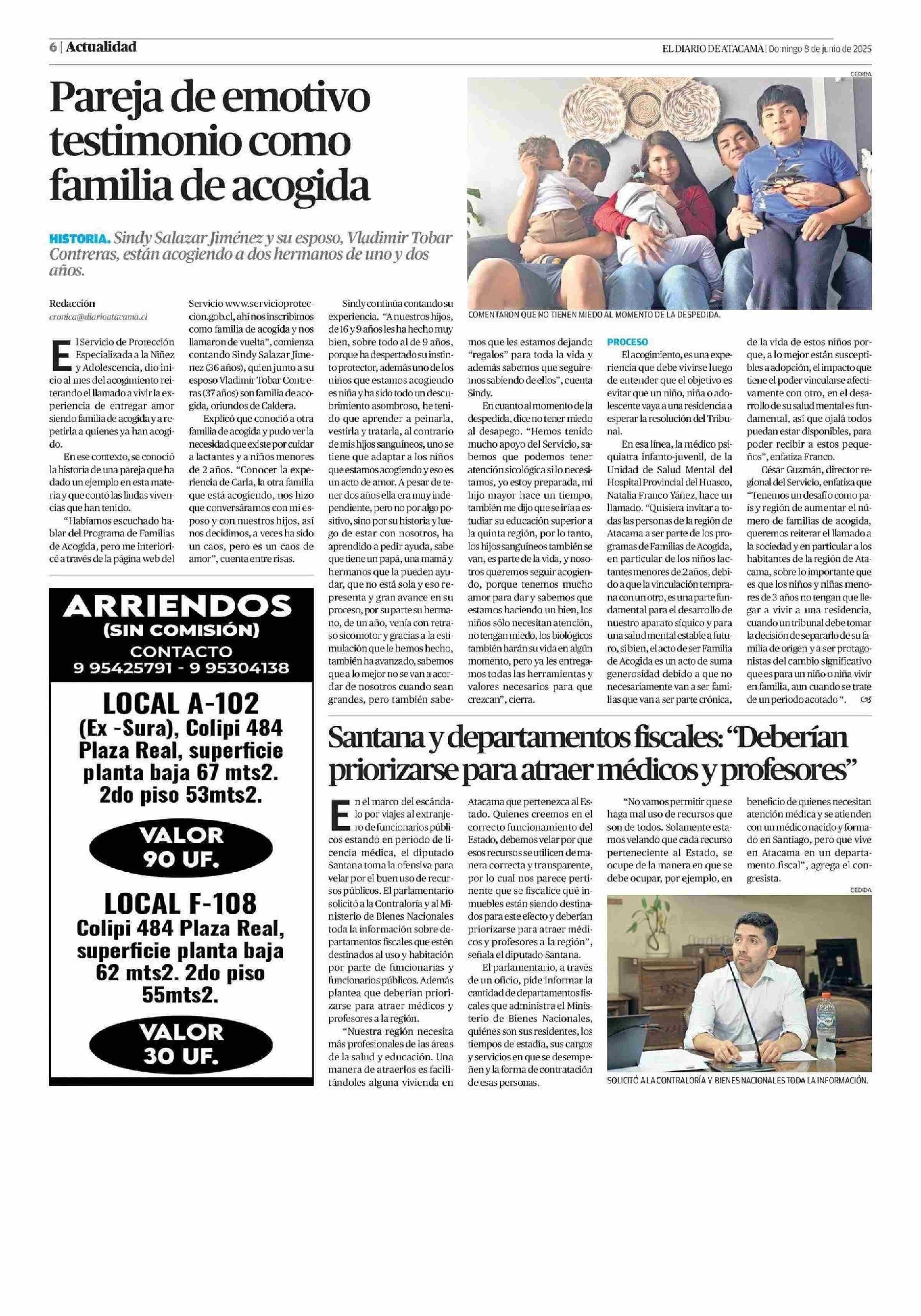 Santana y departamentos fiscales: “Deberían priorizarse para atraer médicos y profesores” 08-06-2025 El Diario de Atacama |