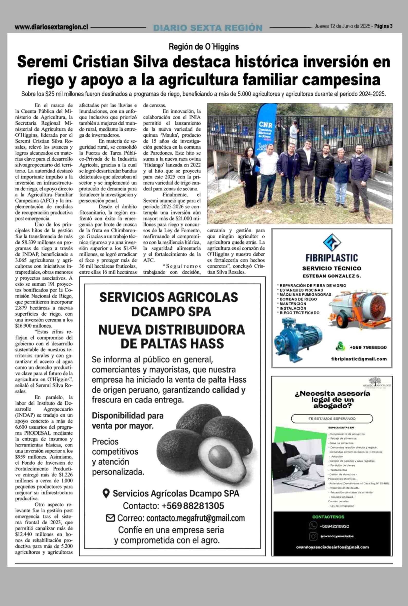 Seremi Cristian Silva destaca histórica inversión en la agricultura familiar campesina riego y apoyo a 12-06-2025 Diario VI Región |
