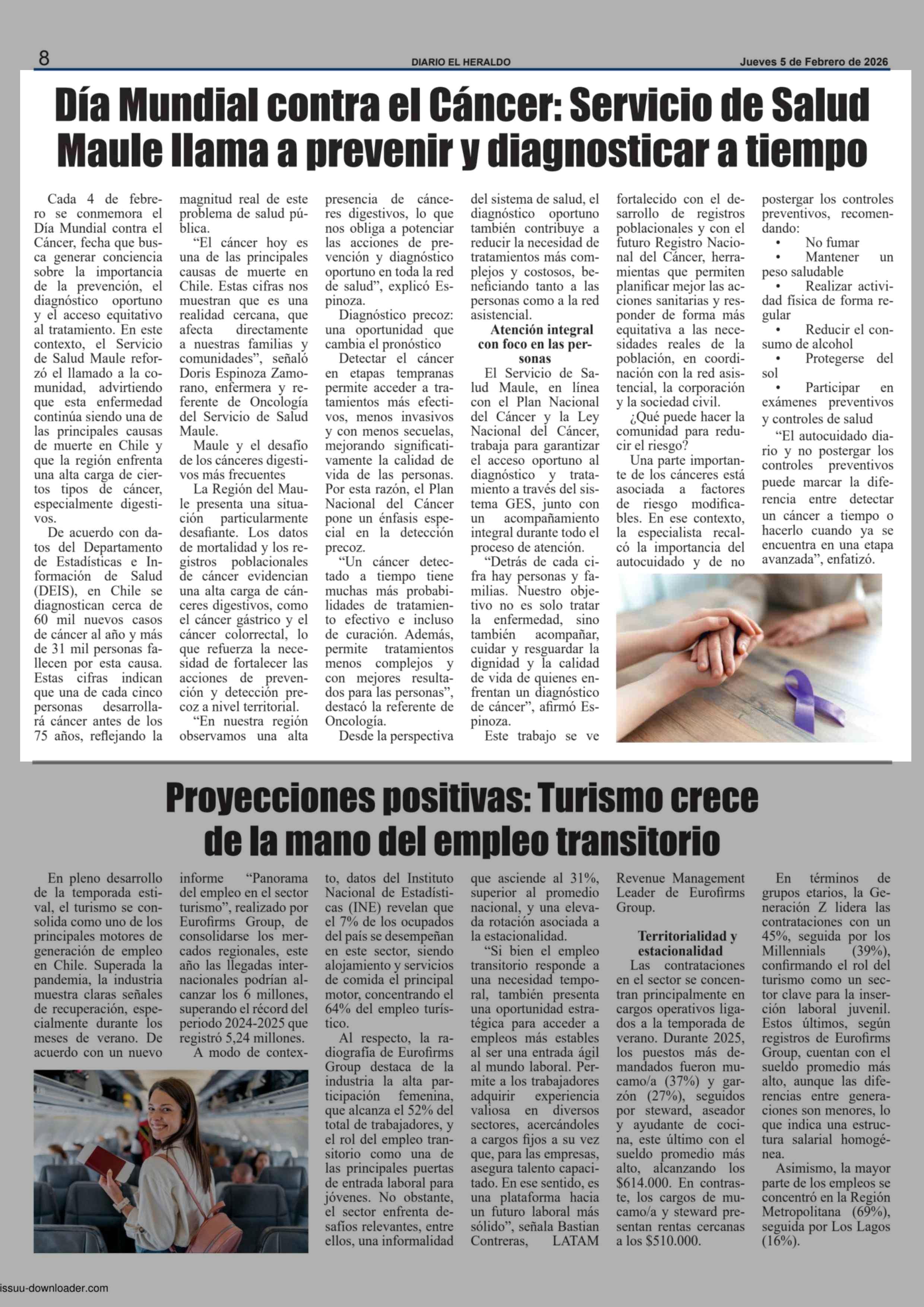 Día Mundial contra el Cáncer: Servicio de Salud Maule llama a prevenir y diagnosticar a tiempo 05-02-2026 El Heraldo |