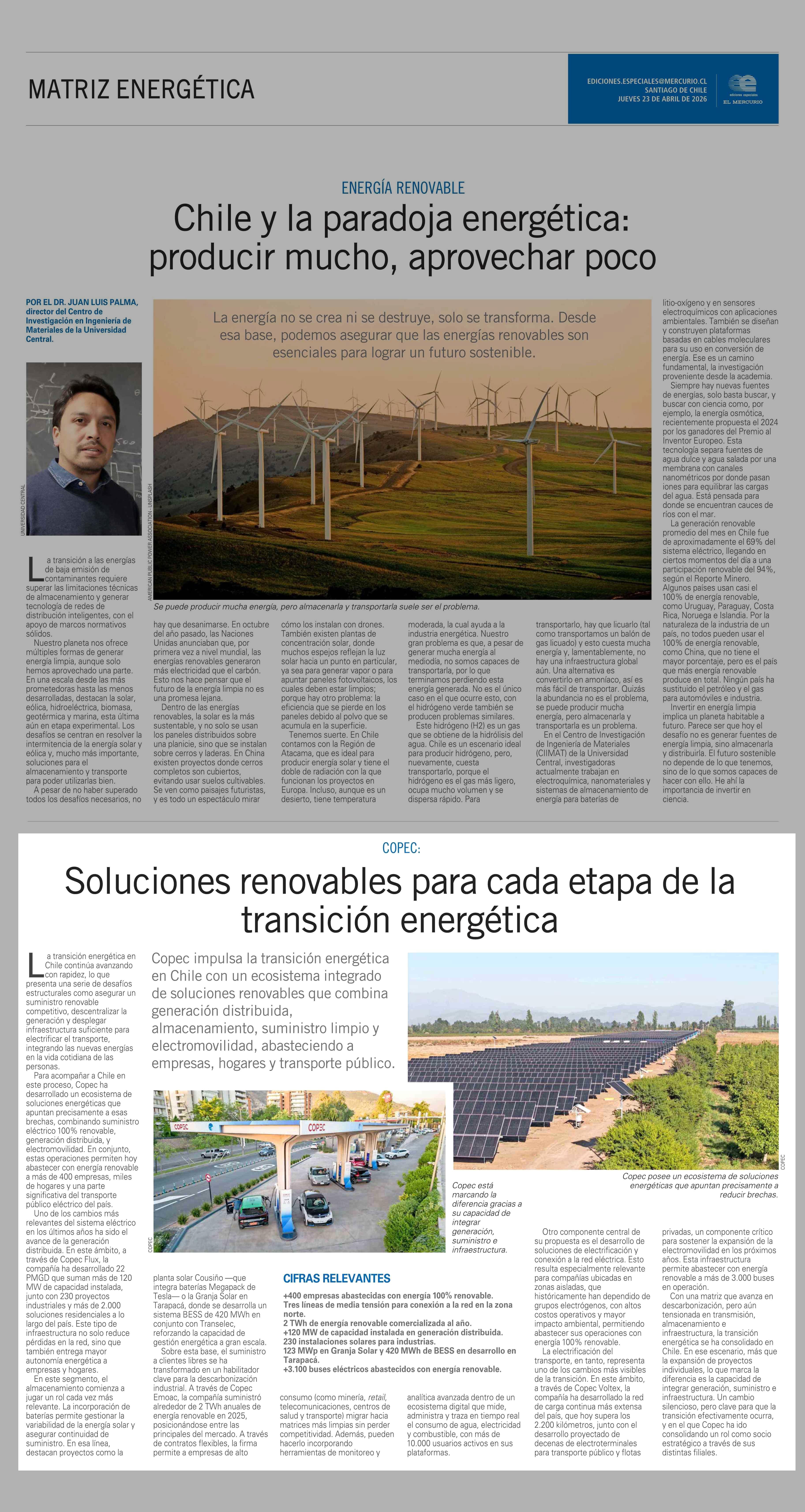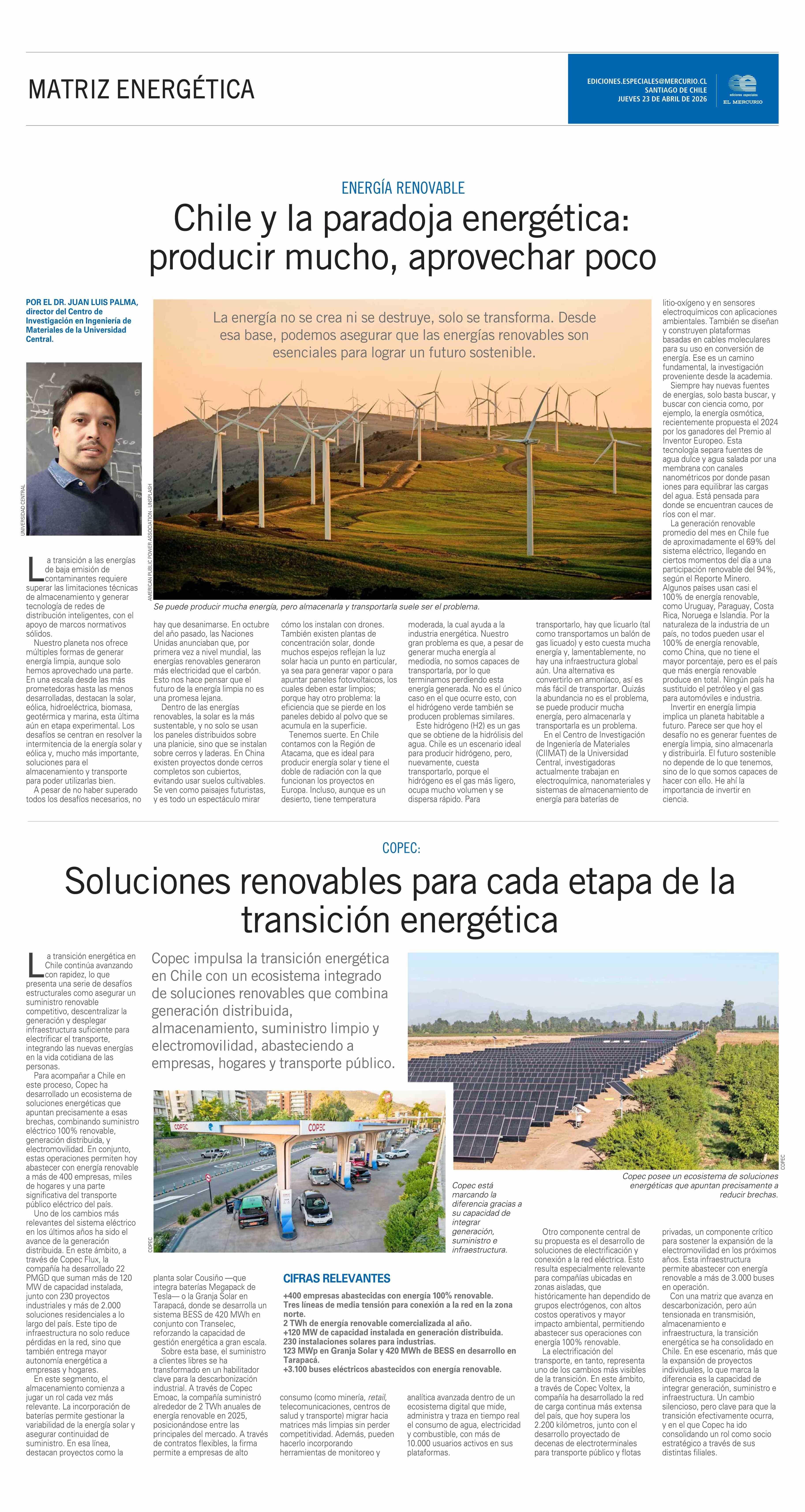 Soluciones renovables para cada etapa de la transición energética 23-04-2026 El Mercurio |
