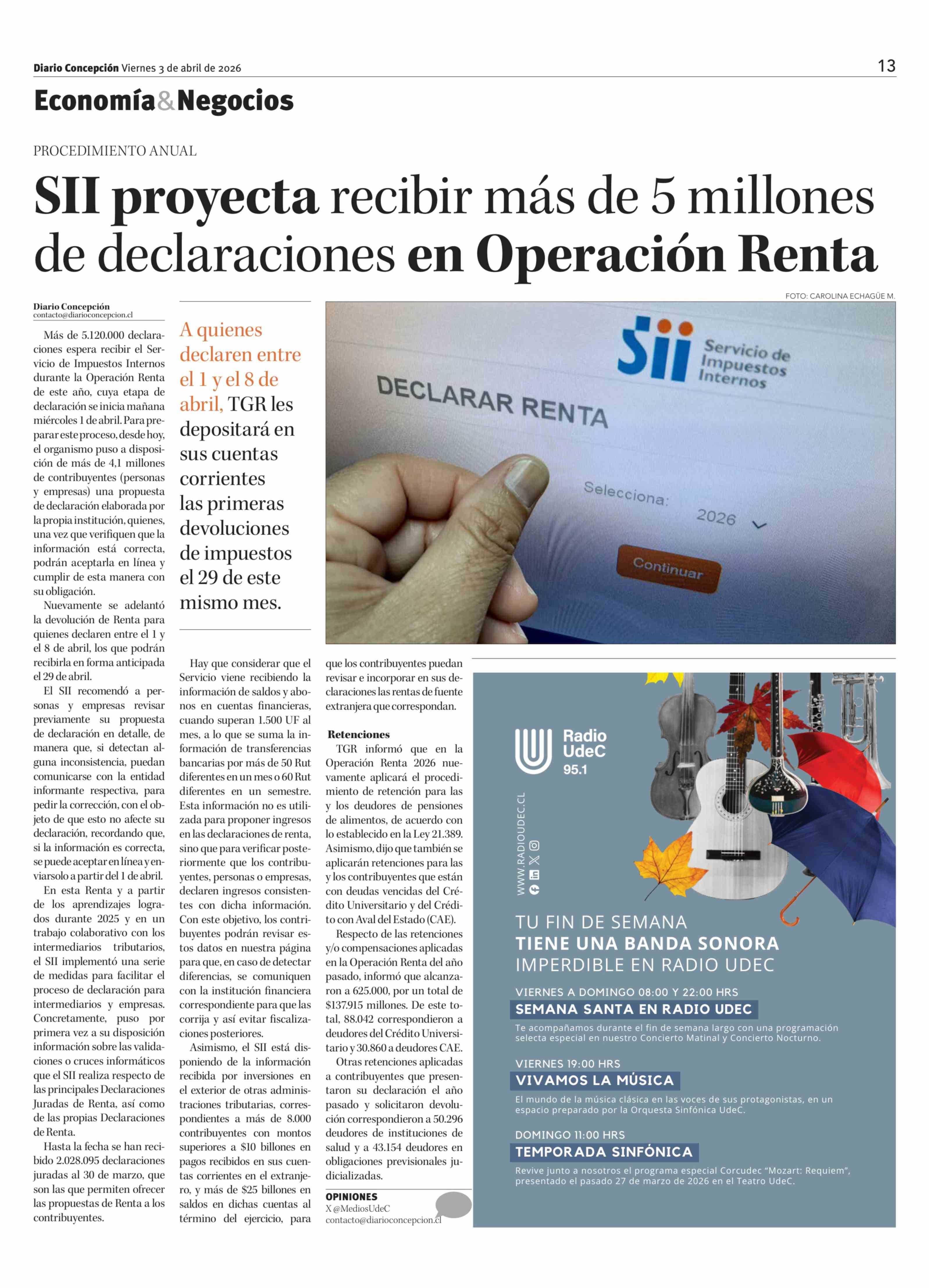 Fuente: Diario Concepción (Diario Concepción) Página(s): 13