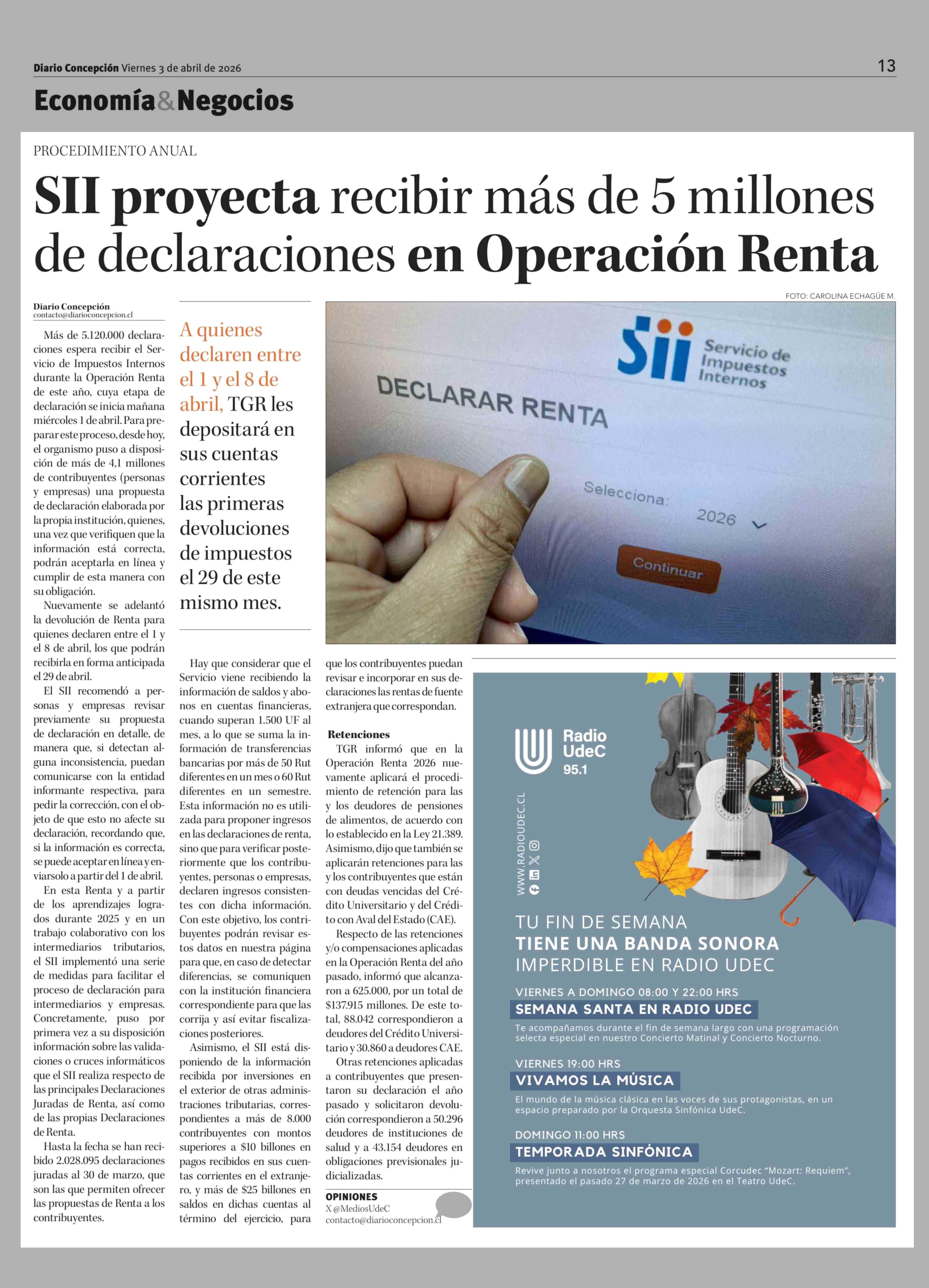 Título: SII proyecta recibir más de 5 millones de declaraciones en Operación Renta