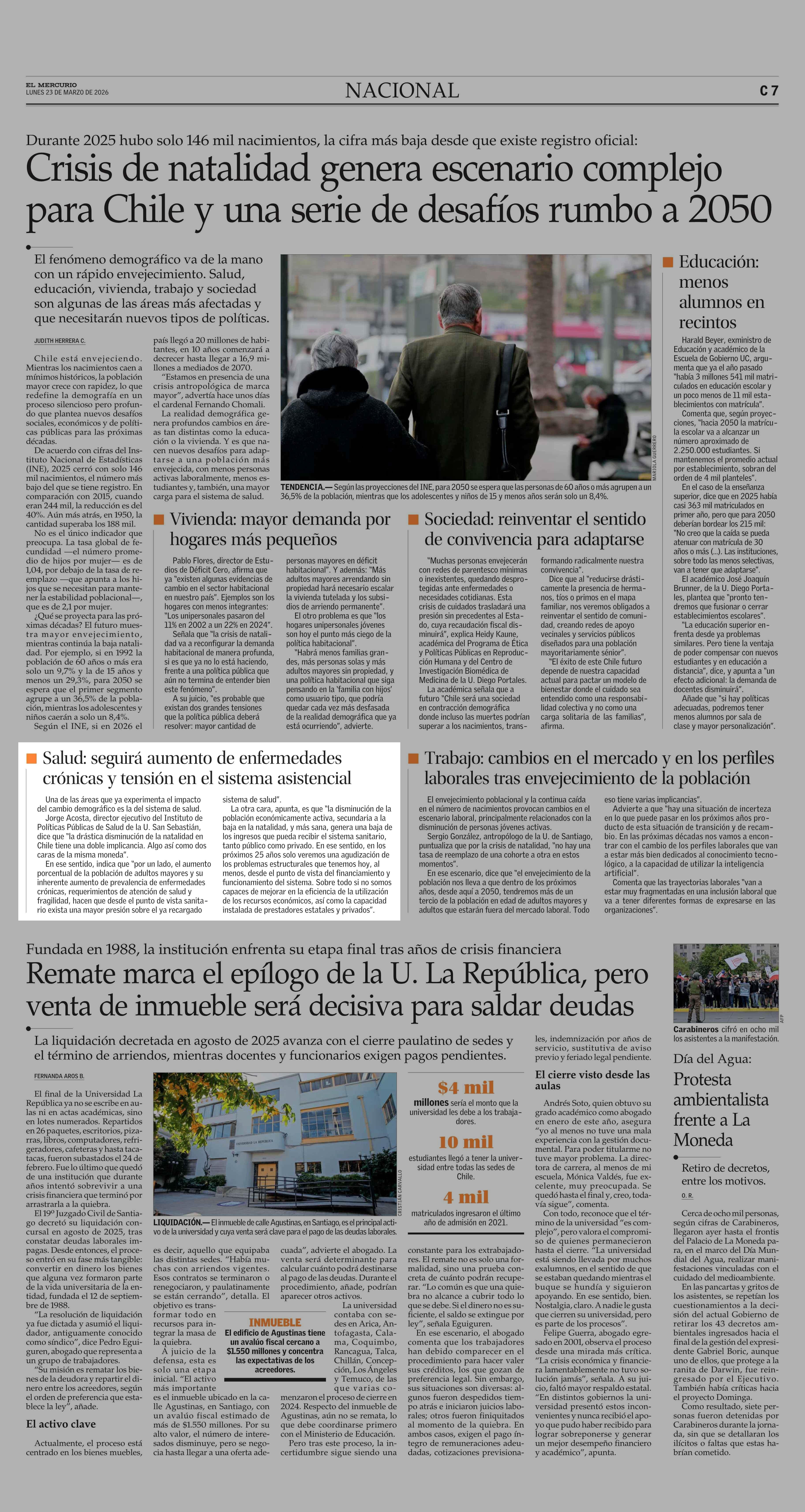 N Salud: seguirá aumento de enfermedades crónicas y tensión en el sistema asistencial 23-03-2026 El Mercurio |