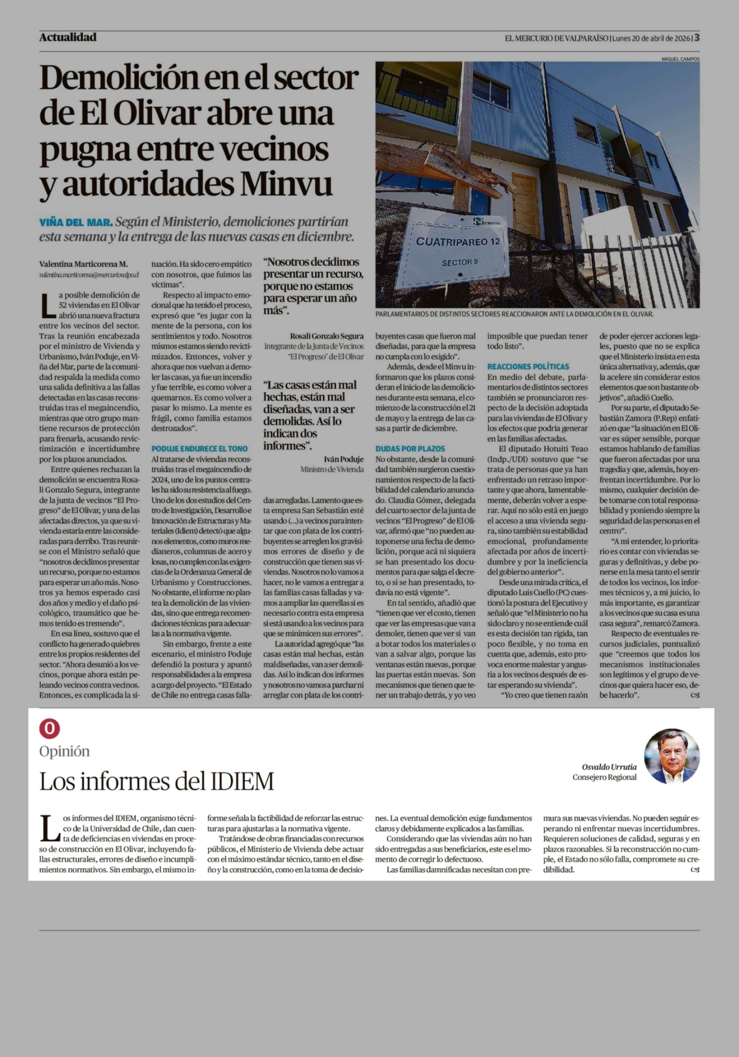 Columnas de Opinión: Los informes del IDIEM 20-04-2026 El Mercurio de Valparaíso |