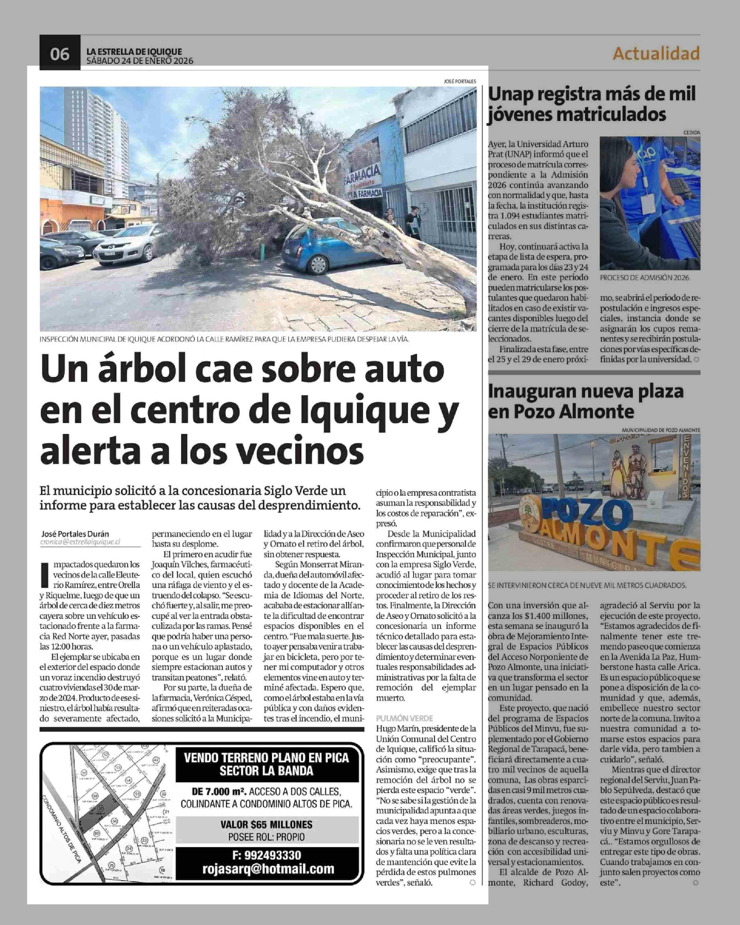 | Fecha: | 24-01-2026 | Sector: | Noticia general | Región: | Región de Tarapacá |